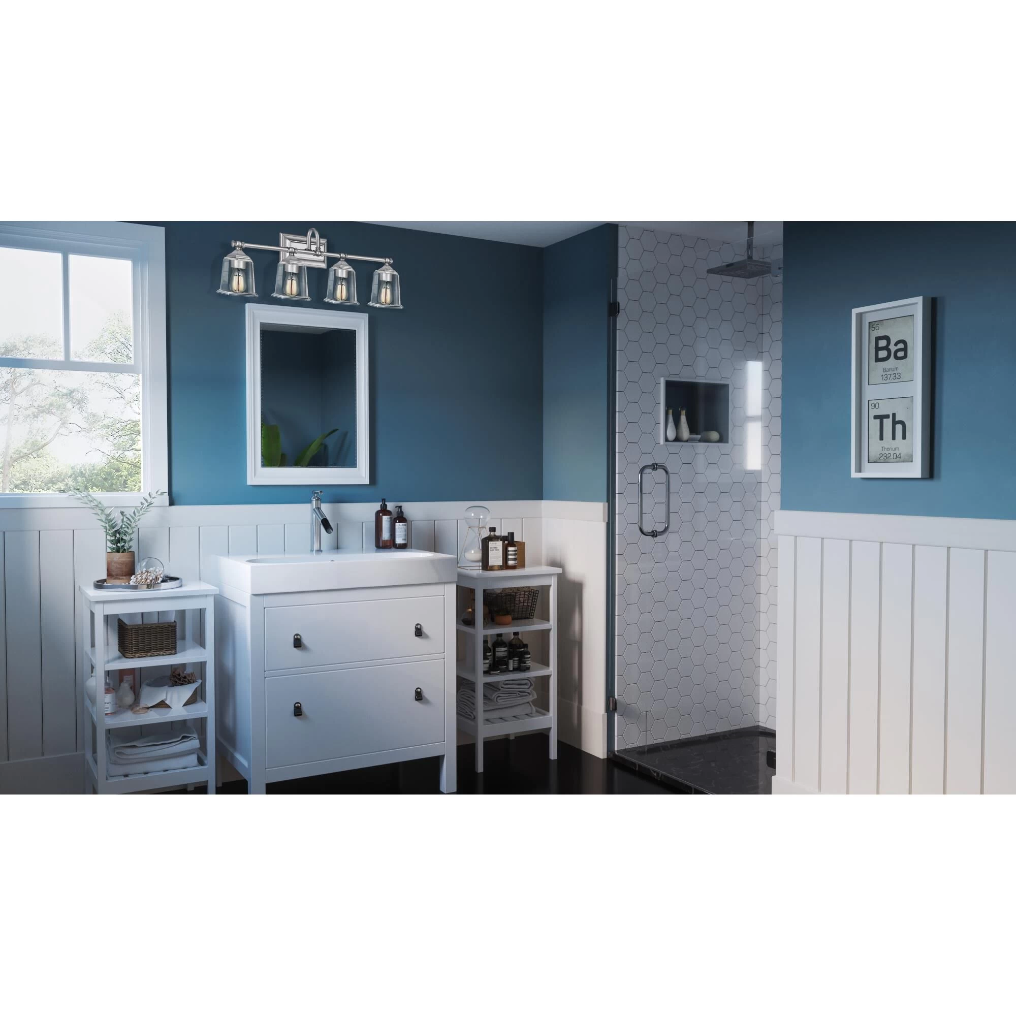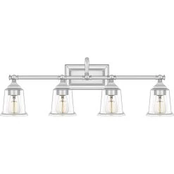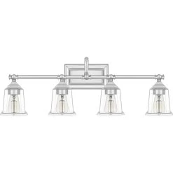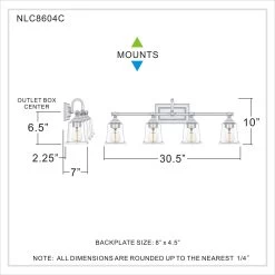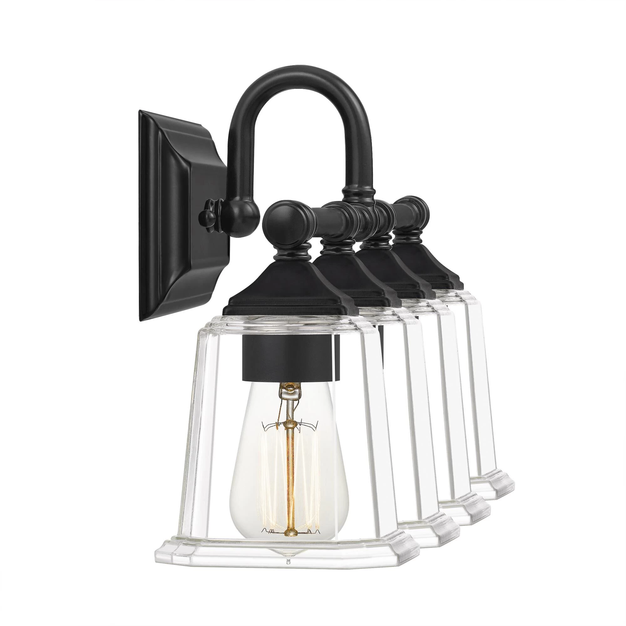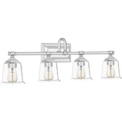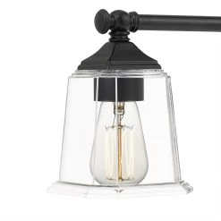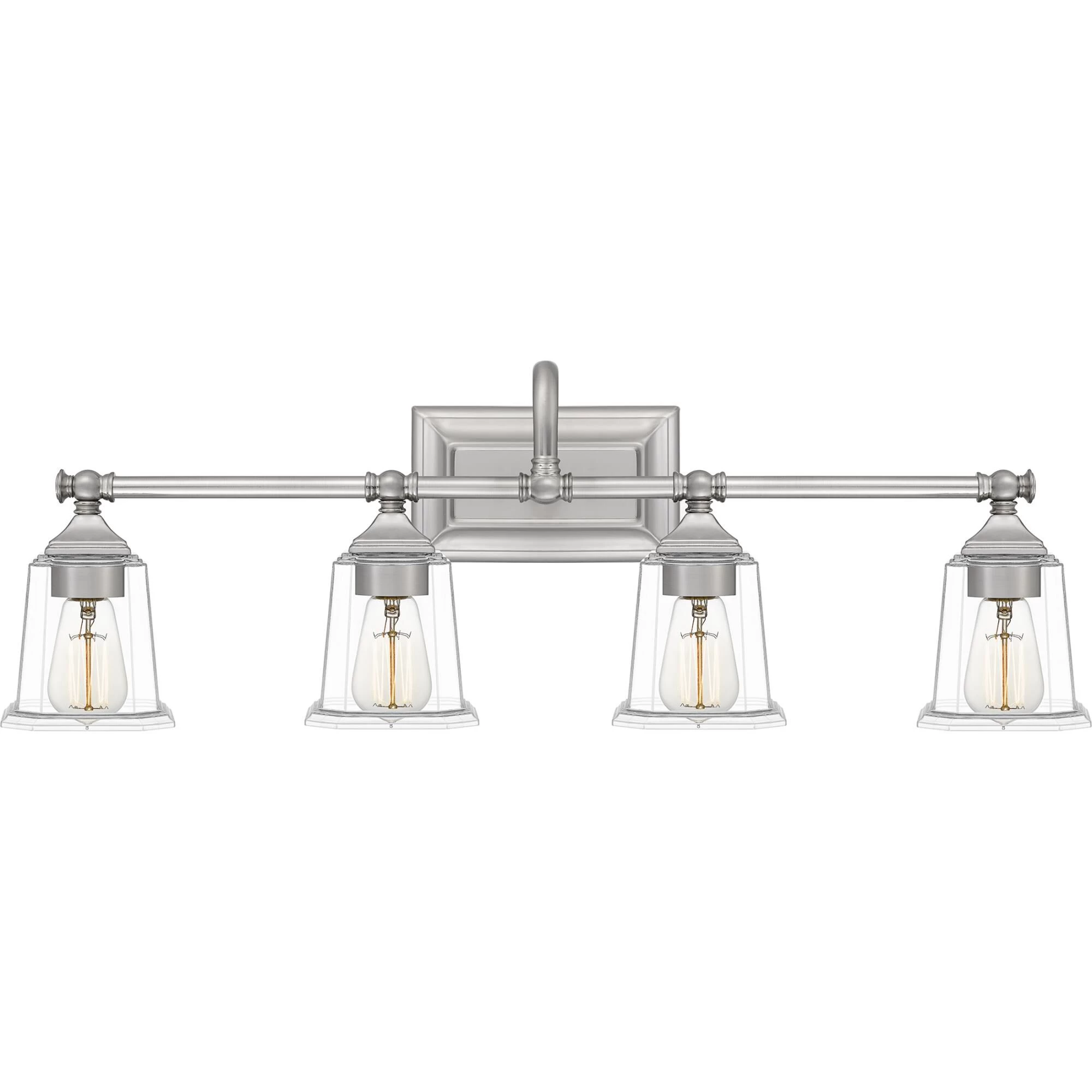 The Nicholas collection gives a solid nod to mid century style. The streamlined silhouette is finished in Brushed Nickel, Polished Chrome, or Earth Black to compliment a variety of home styles. The squared shape of the clear glass shades gives this design an edge and it is complemented beautifully by the rectangular backplate. All bath fixtures can be mounted as uplights or downlights and are offered in several sizes.