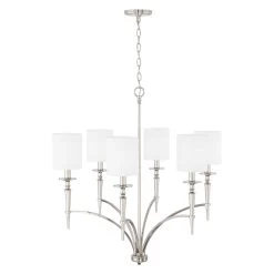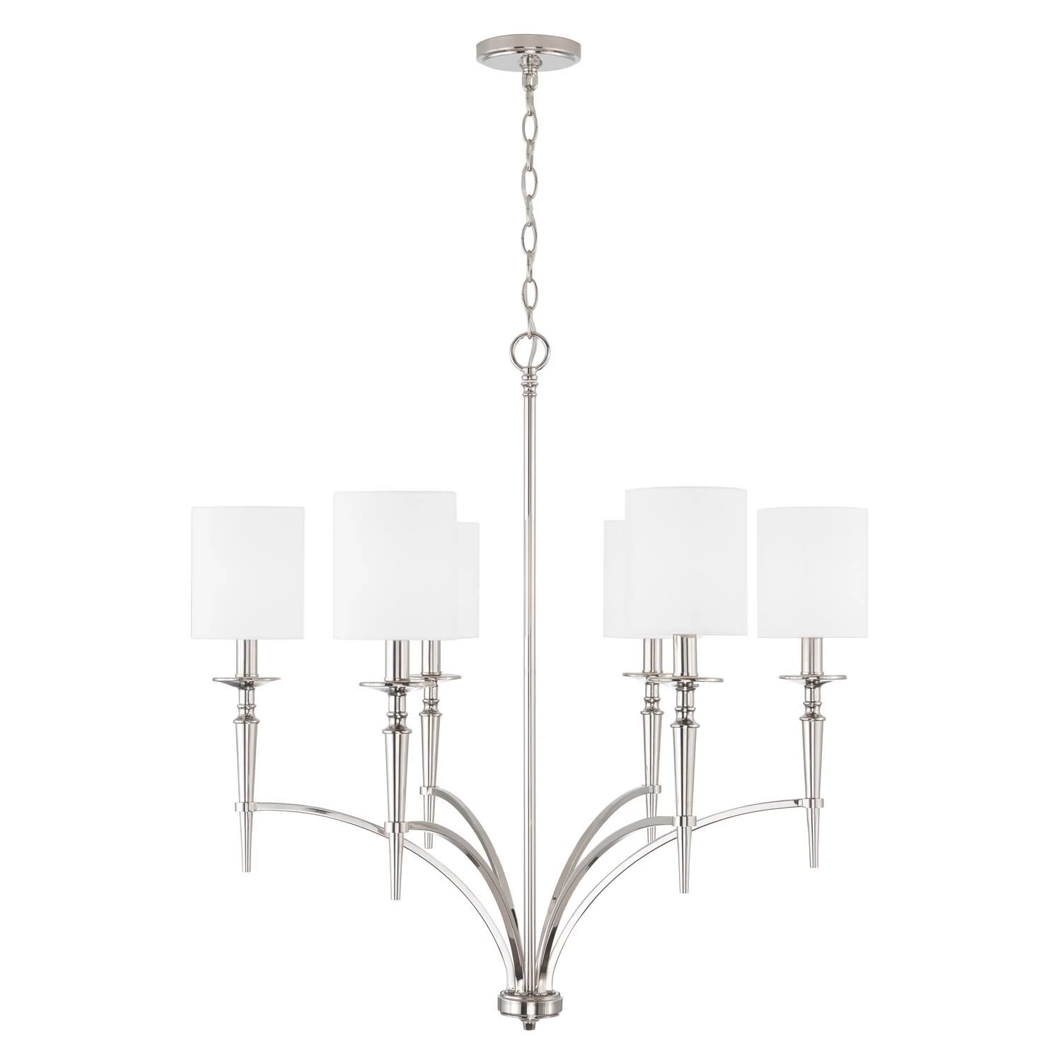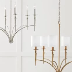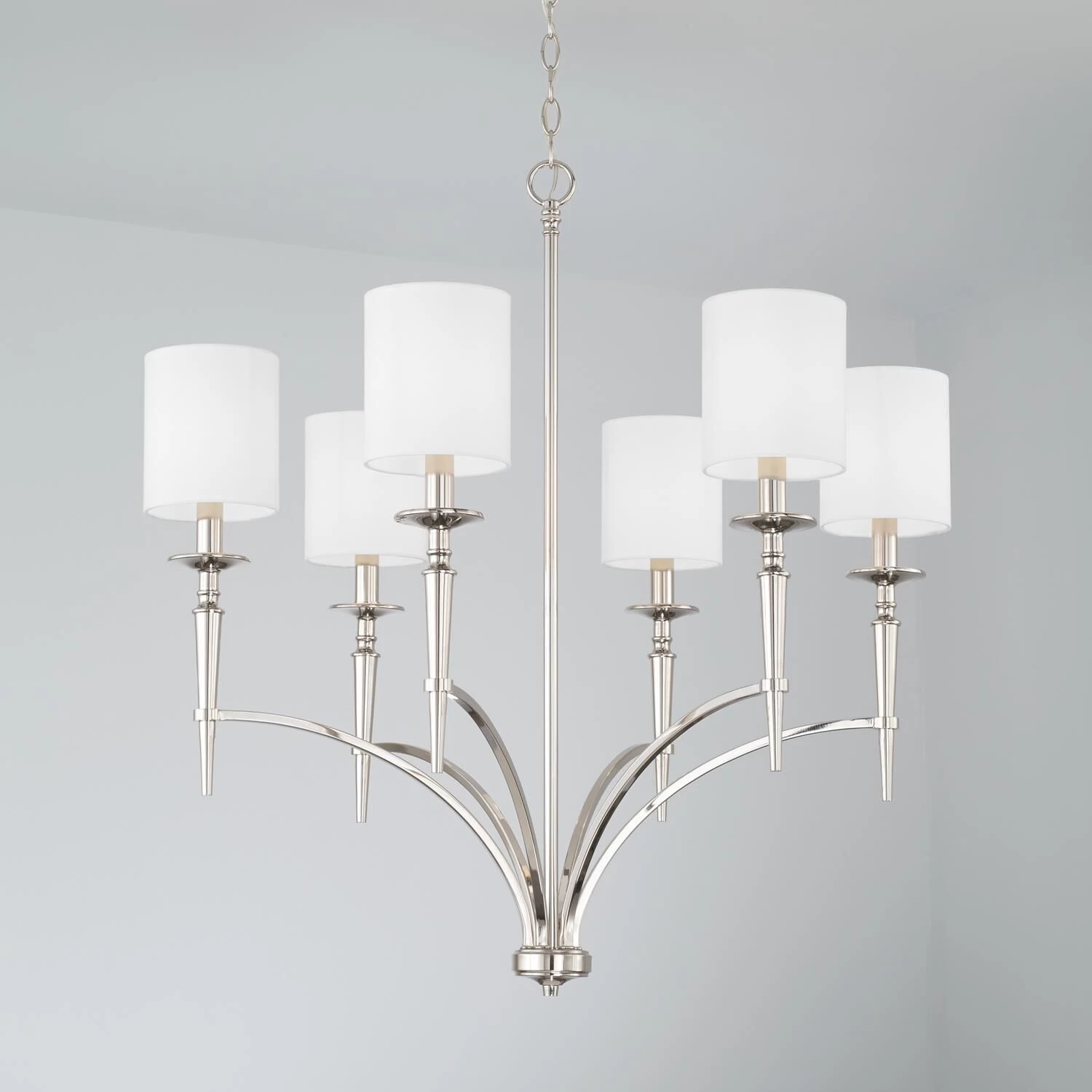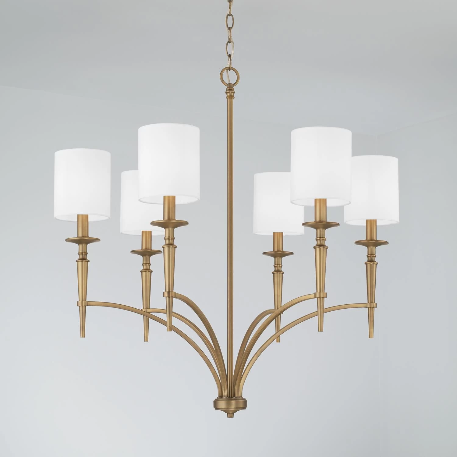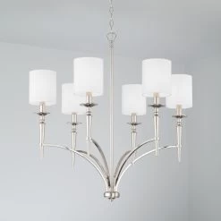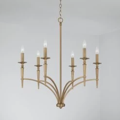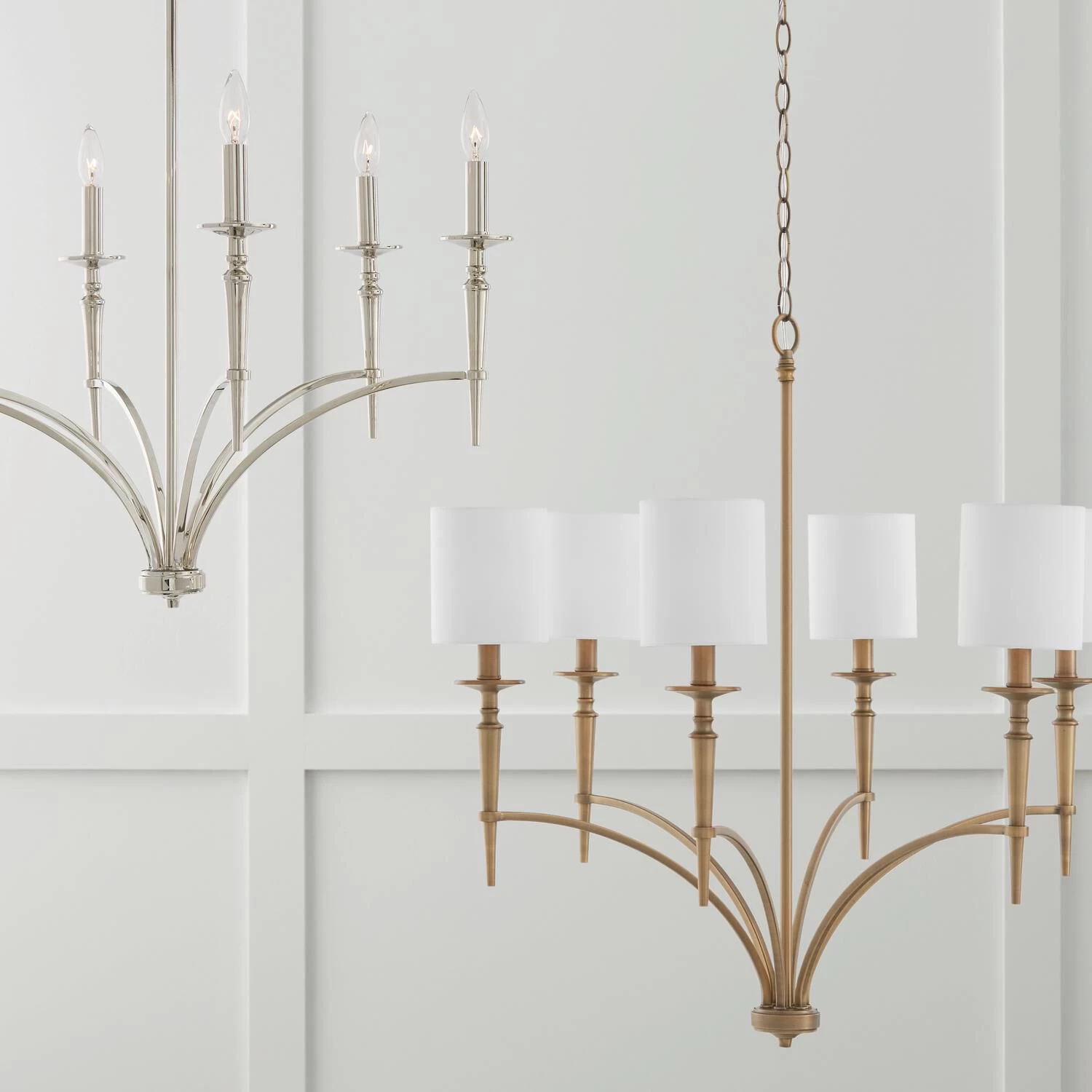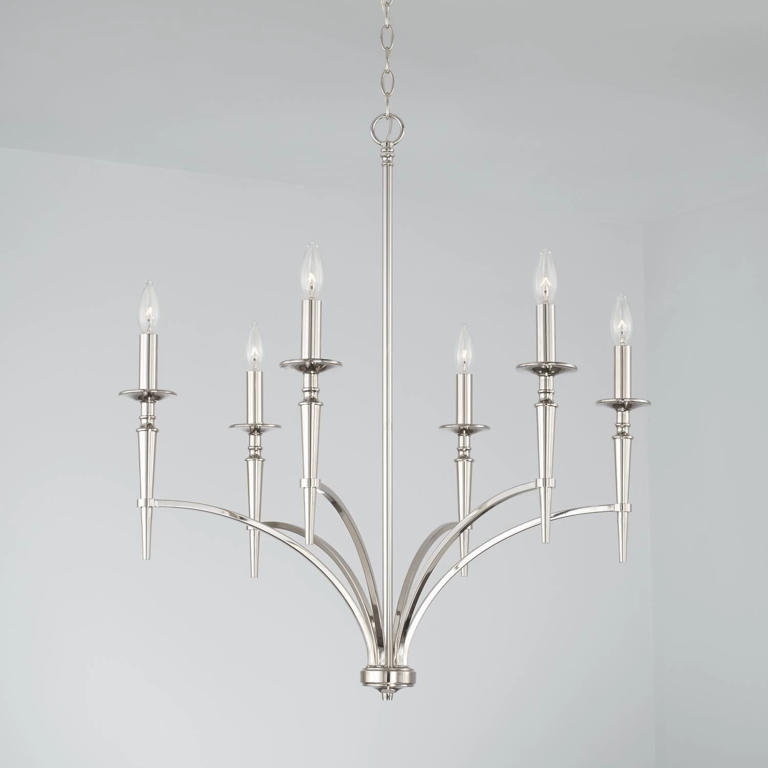 Straight edges and striking curves add layers of drama to the Abbie 6-Light Chandelier. The candlestick detailing brings a glamourous nod to this updated design.