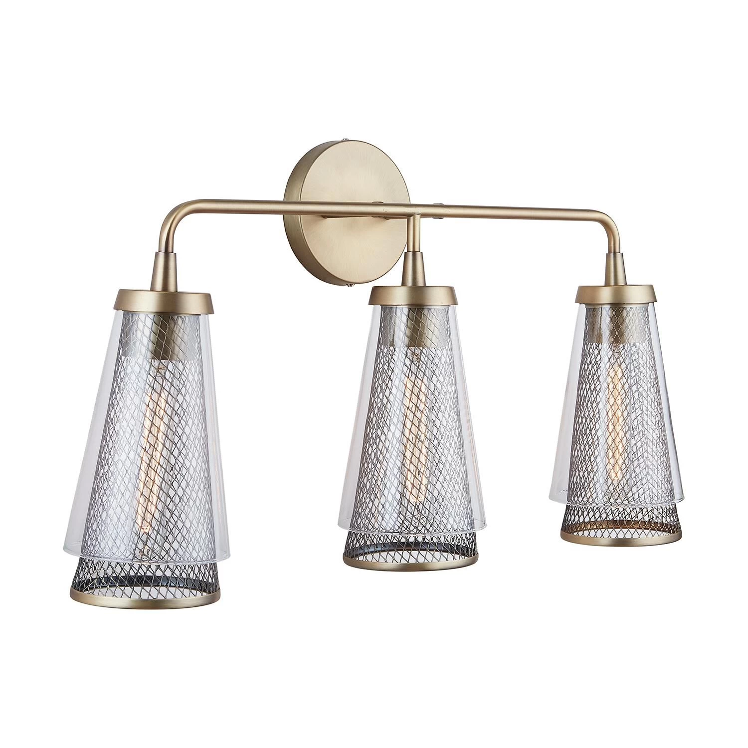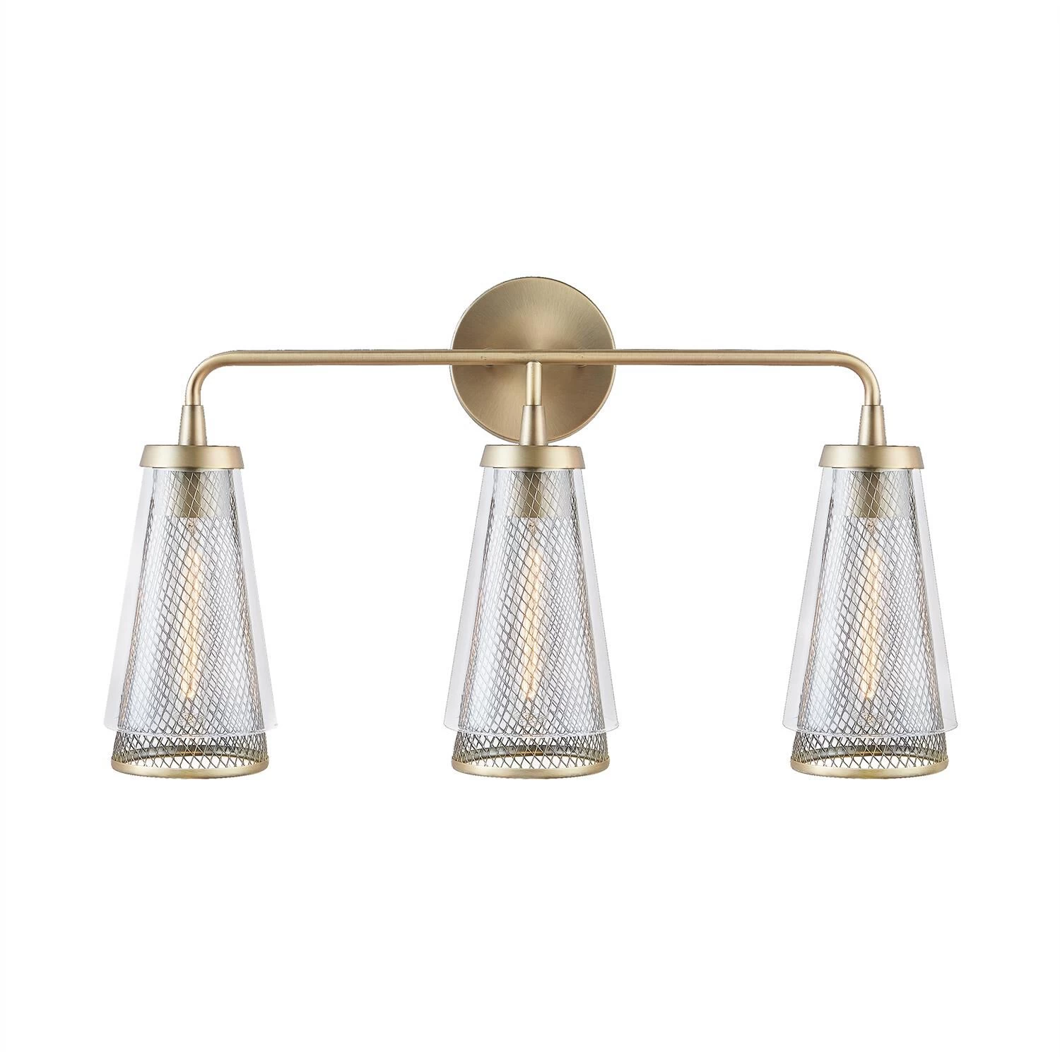 3 light vanity with Aged Brass finish and Mesh and Clear Glass shades