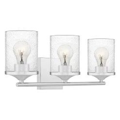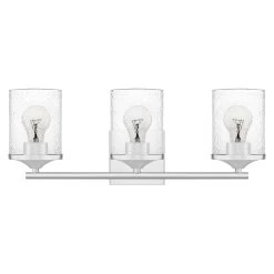 Add beautiful light to smaller spaces with the Abner series of venity lights and pendants, featuring clear hammered glass in a range of finishes like aged brass, matte black, and polished chrome. Proof that clean, simple design is impactful, this versatile style would work well in a kitchen, bath, or home office.