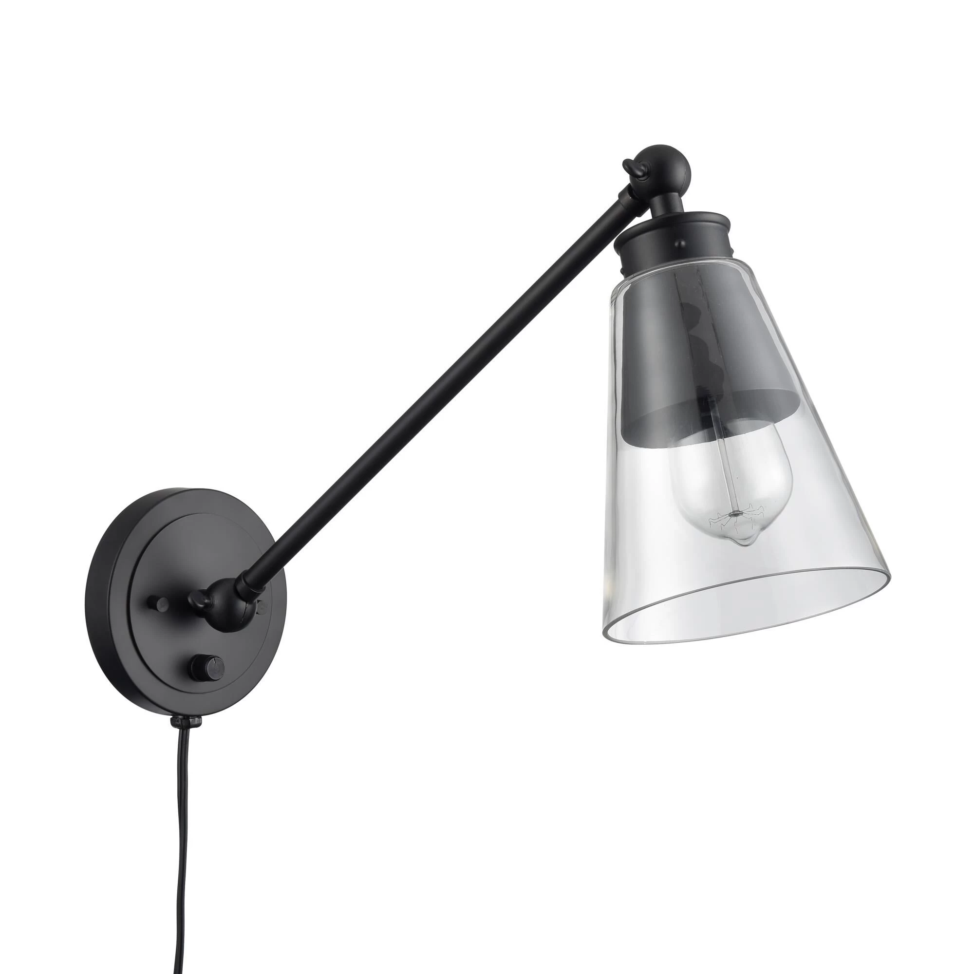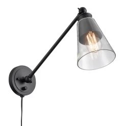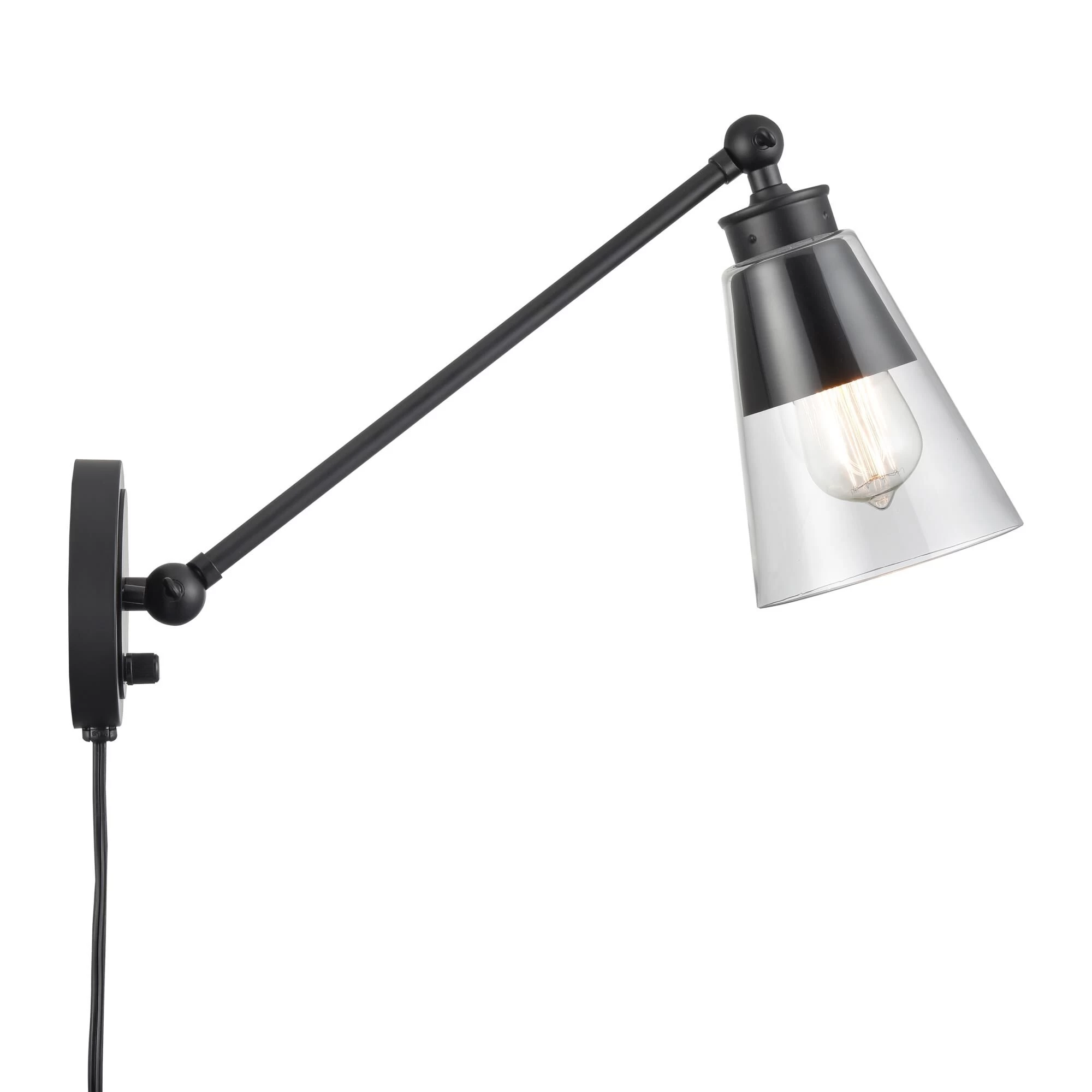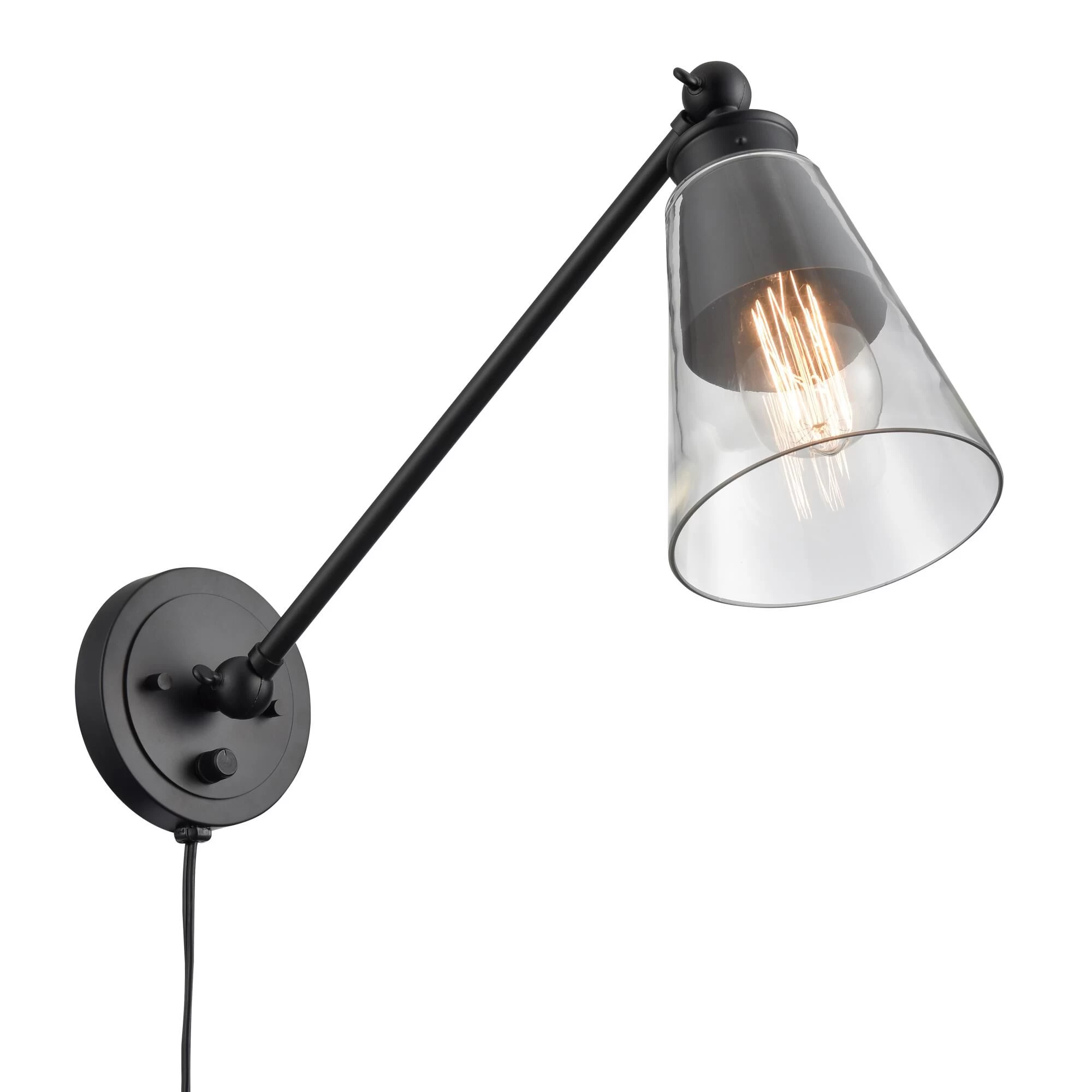 The Albany swingarm sconce has a rotatable arm and adjustable shade that casts functional light in almost any desired direction. This piece is defined by an interesting metal and glass shade connection.