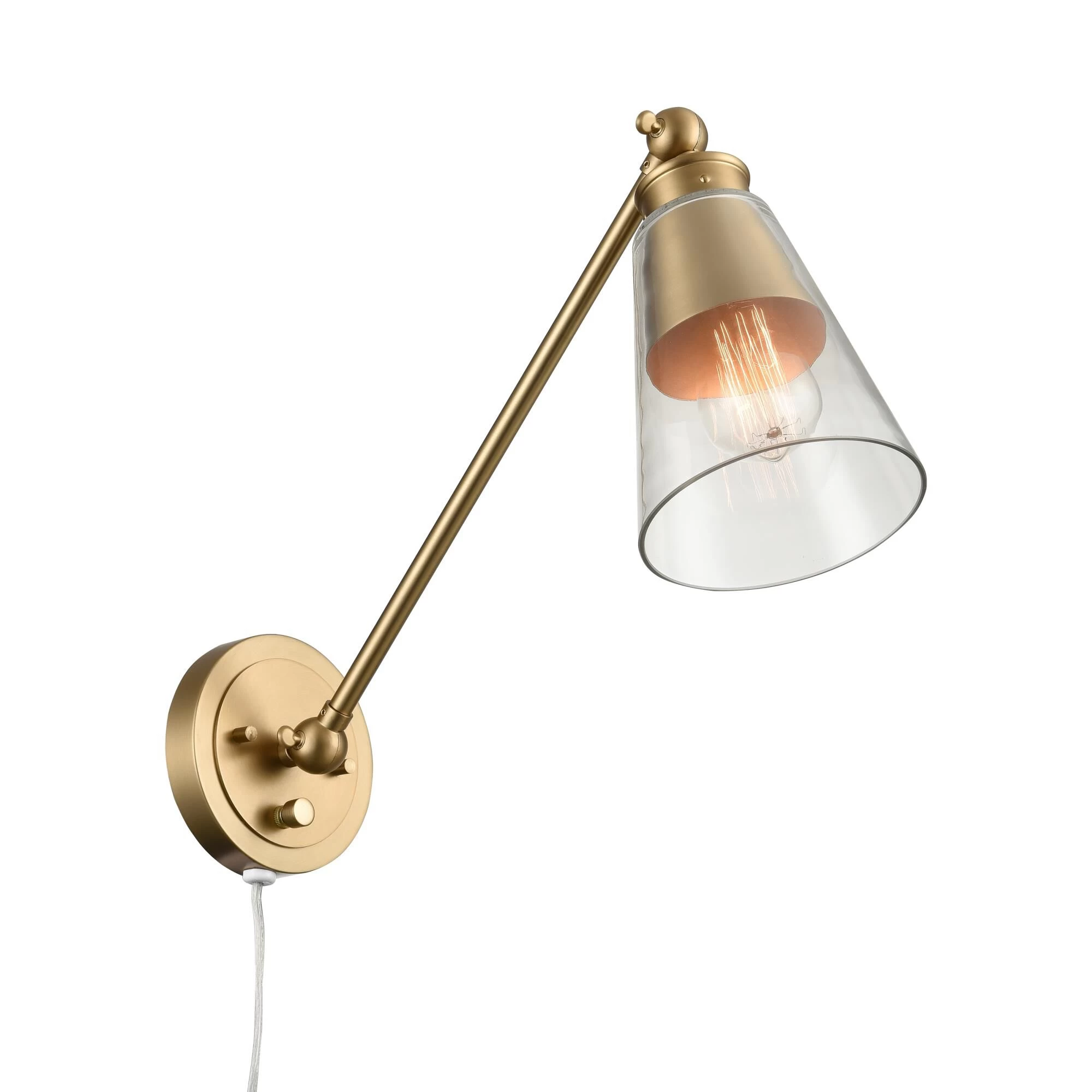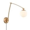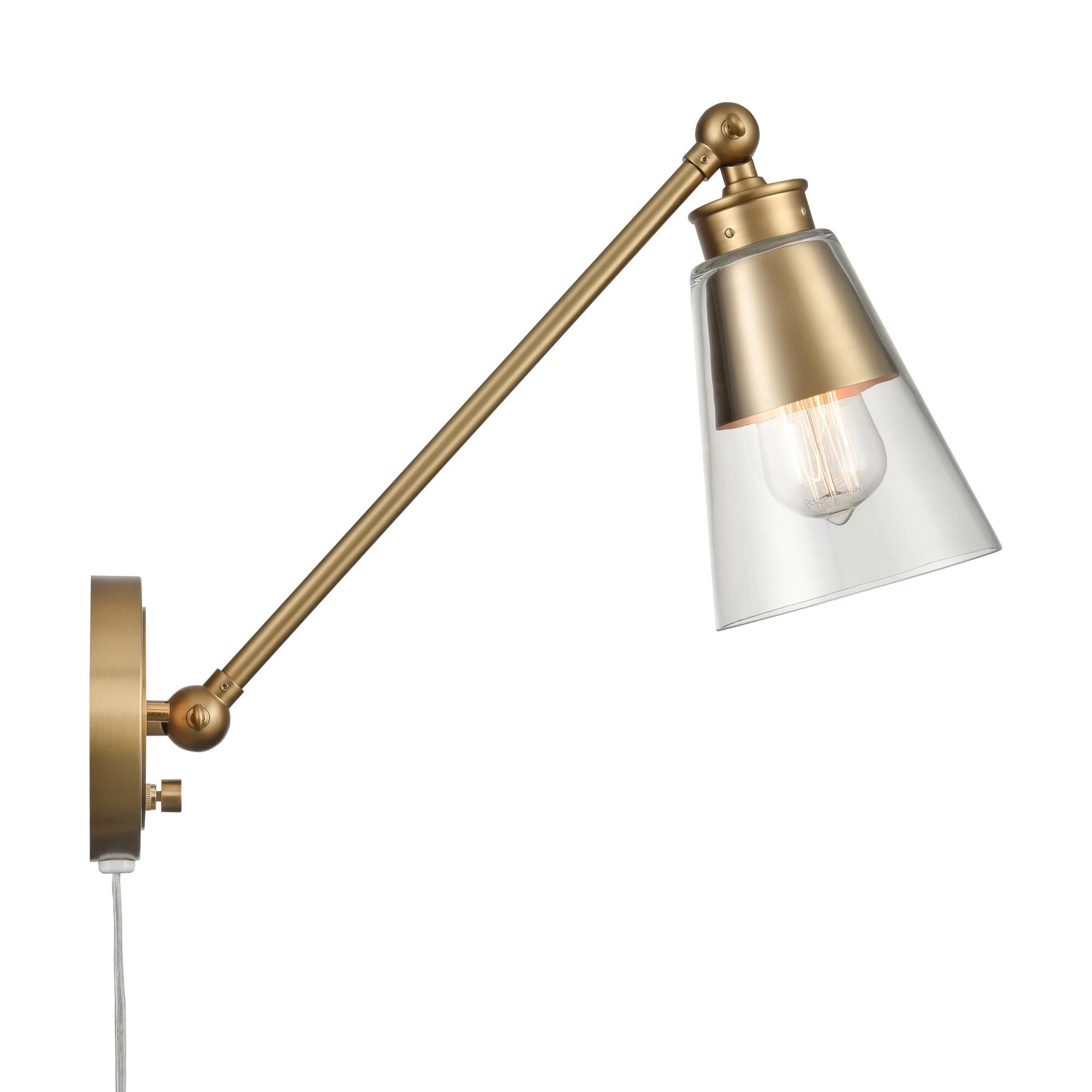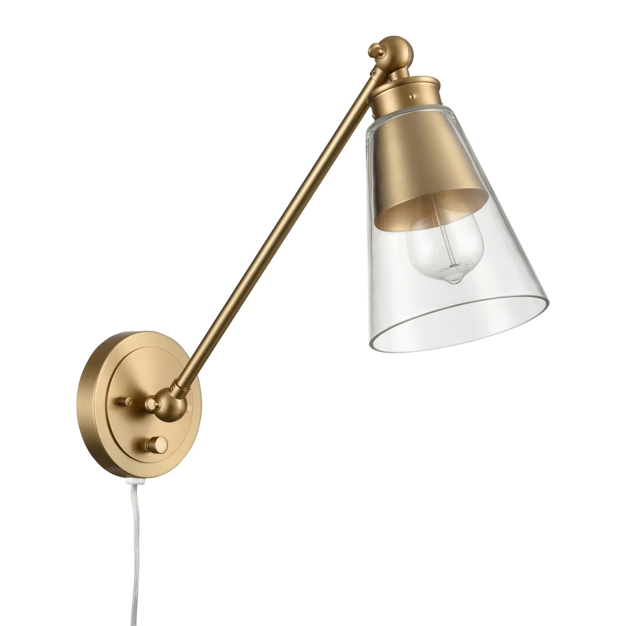 The Albany swingarm sconce has a rotatable arm and adjustable shade that casts functional light in almost any desired direction. This piece is defined by an interesting metal and glass shade connection.