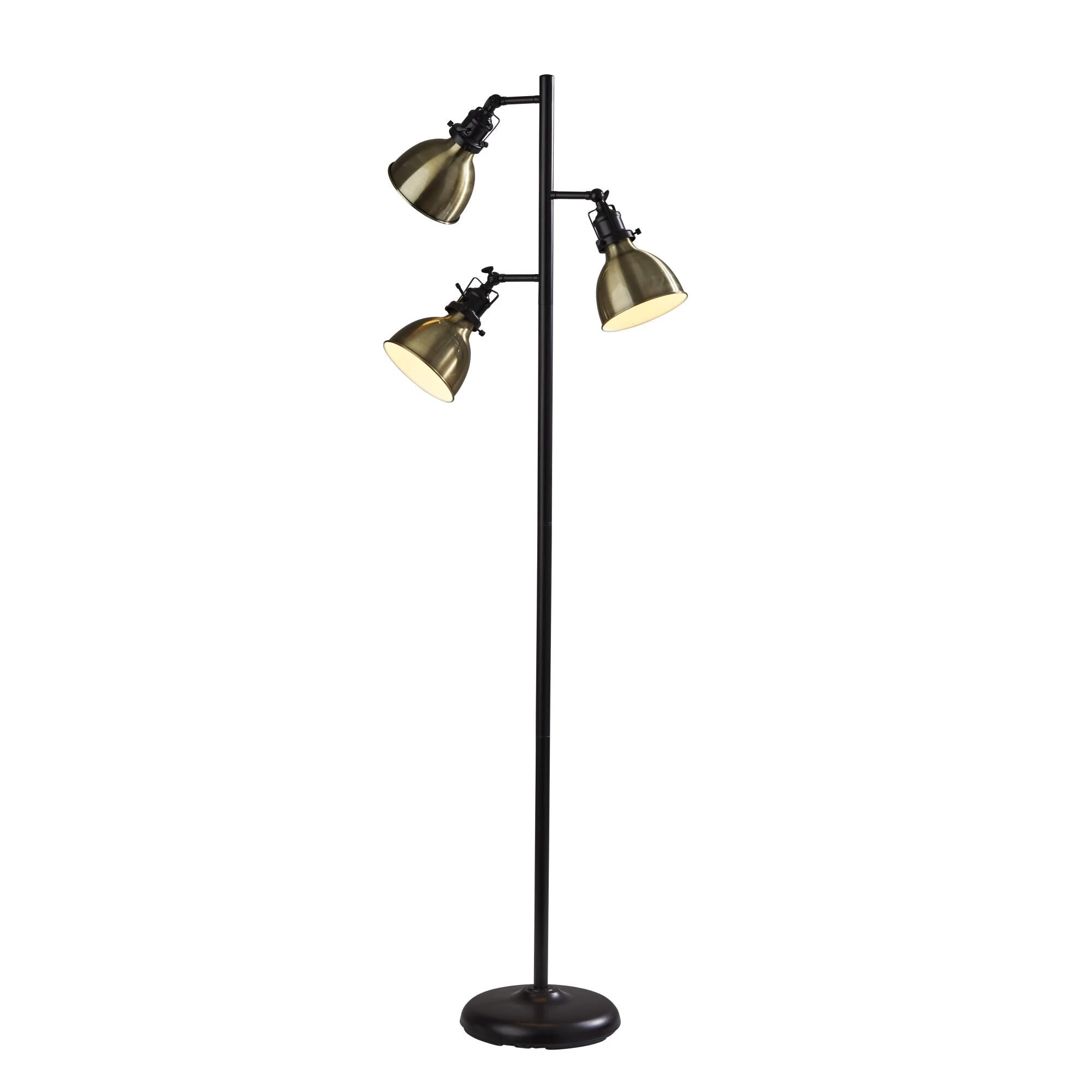 An essential floor lamp for any space, this 64.75” floor lamp brings vintage industrial character to your bedroom or living area with its metal construction and two-tone dark bronze and antique brass finish. Three task schoolhouse style shades with decorative adjustable joints allow you direct the light at the right angle for the job at hand. A convenient switch located on the pole turns the lamp on and off.