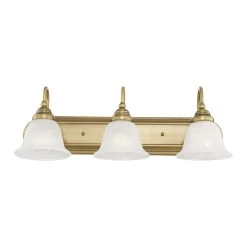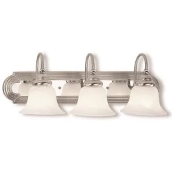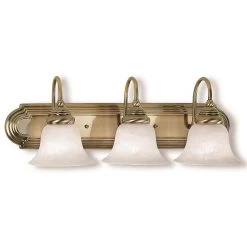 The Belmont bath bracket with bronze arms & polished chrome accents framing elegant, alabaster swirl glass. The Belmont collection is warm and traditional becoming a focal point in any special room.