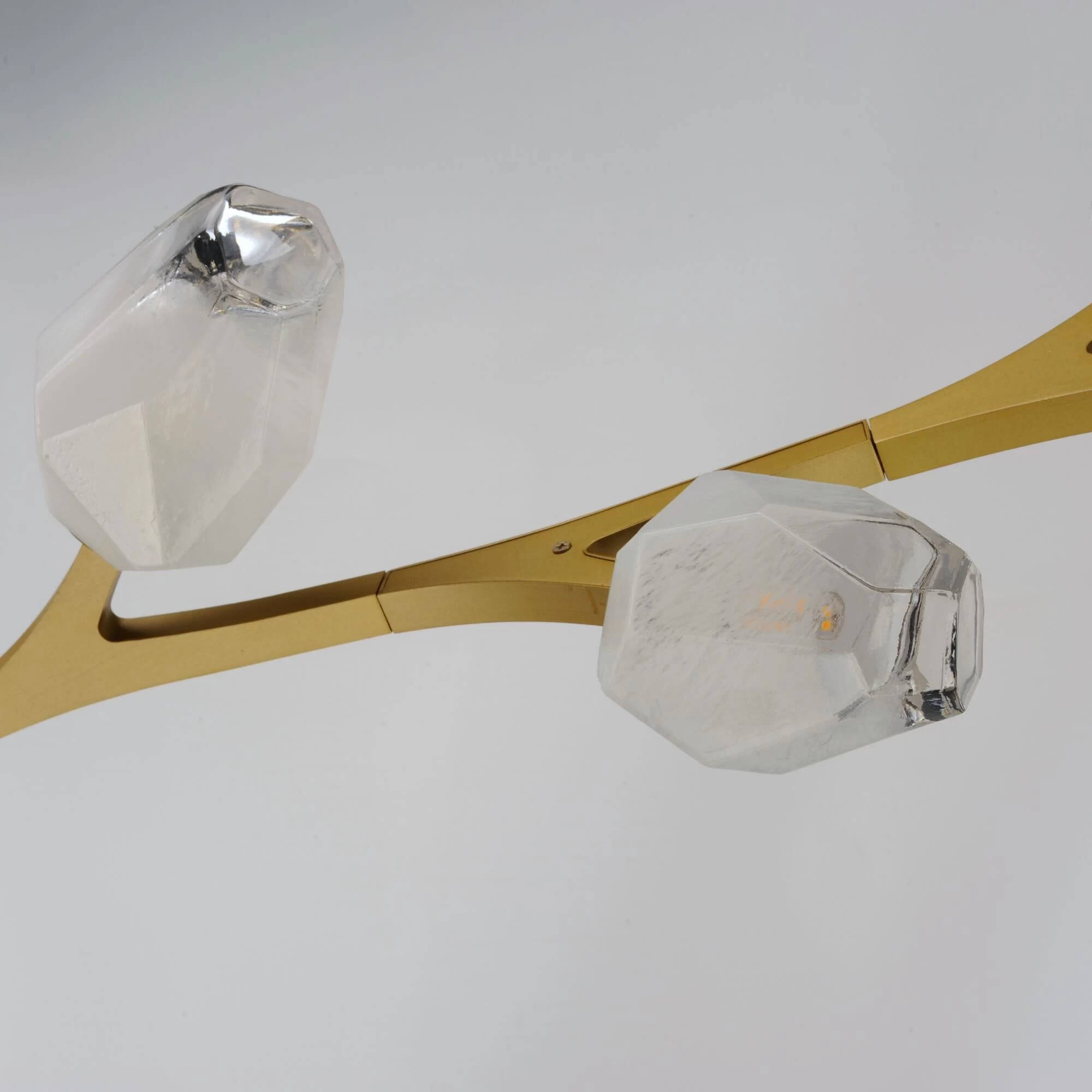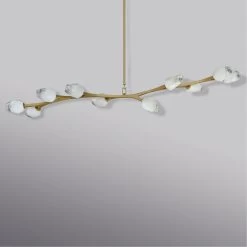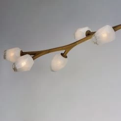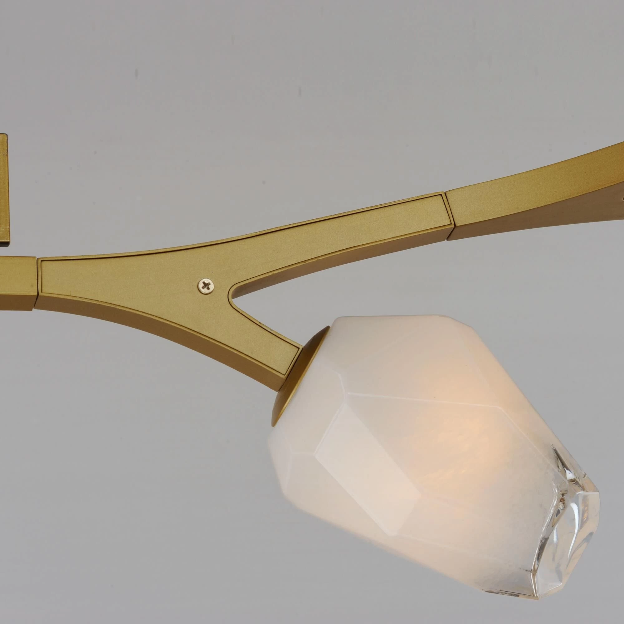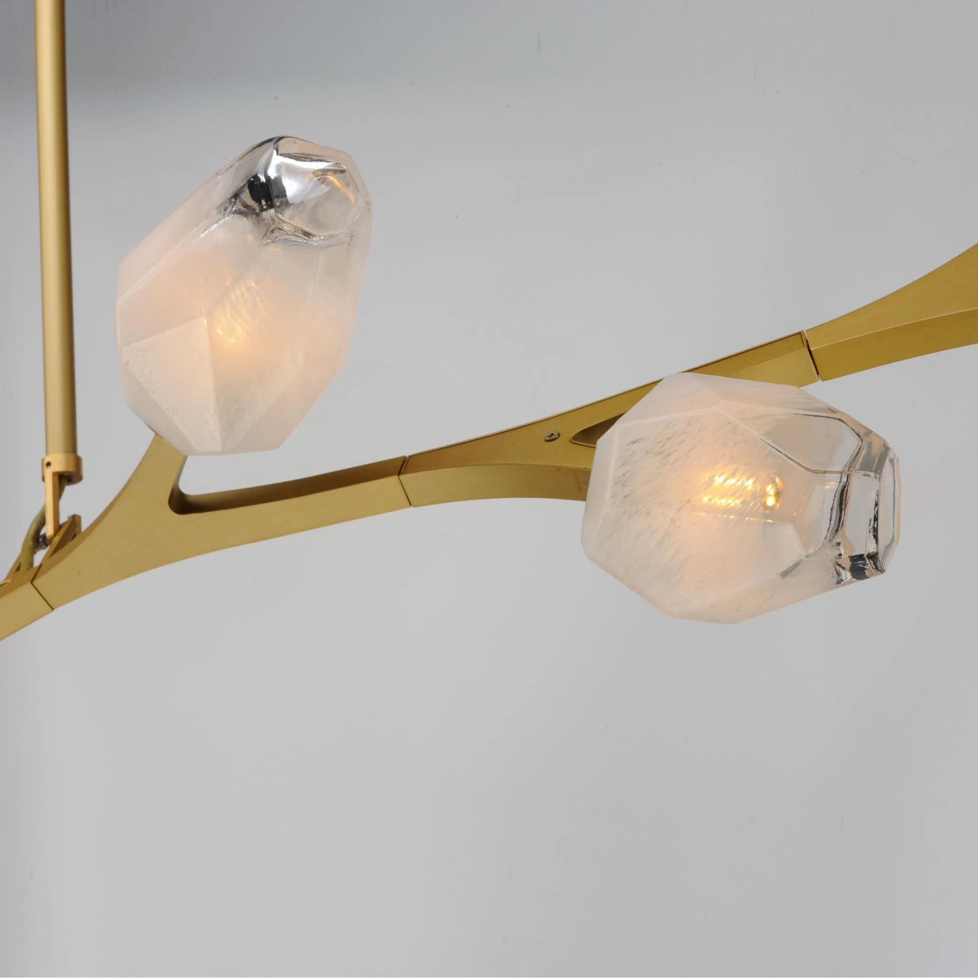 A branched frame inspired by a close observation of nature. Finely engineered and designed in delicate detail, the soft Gold finish pairs with organically formed Morning Frost glass that is partially frosted to conceal the LED light source within. Contemporary in design and soft in nature, this collection complements both modern and transitional aesthetics.