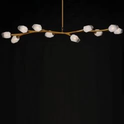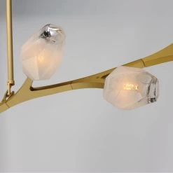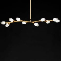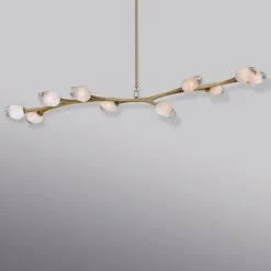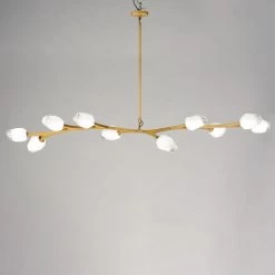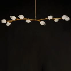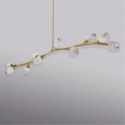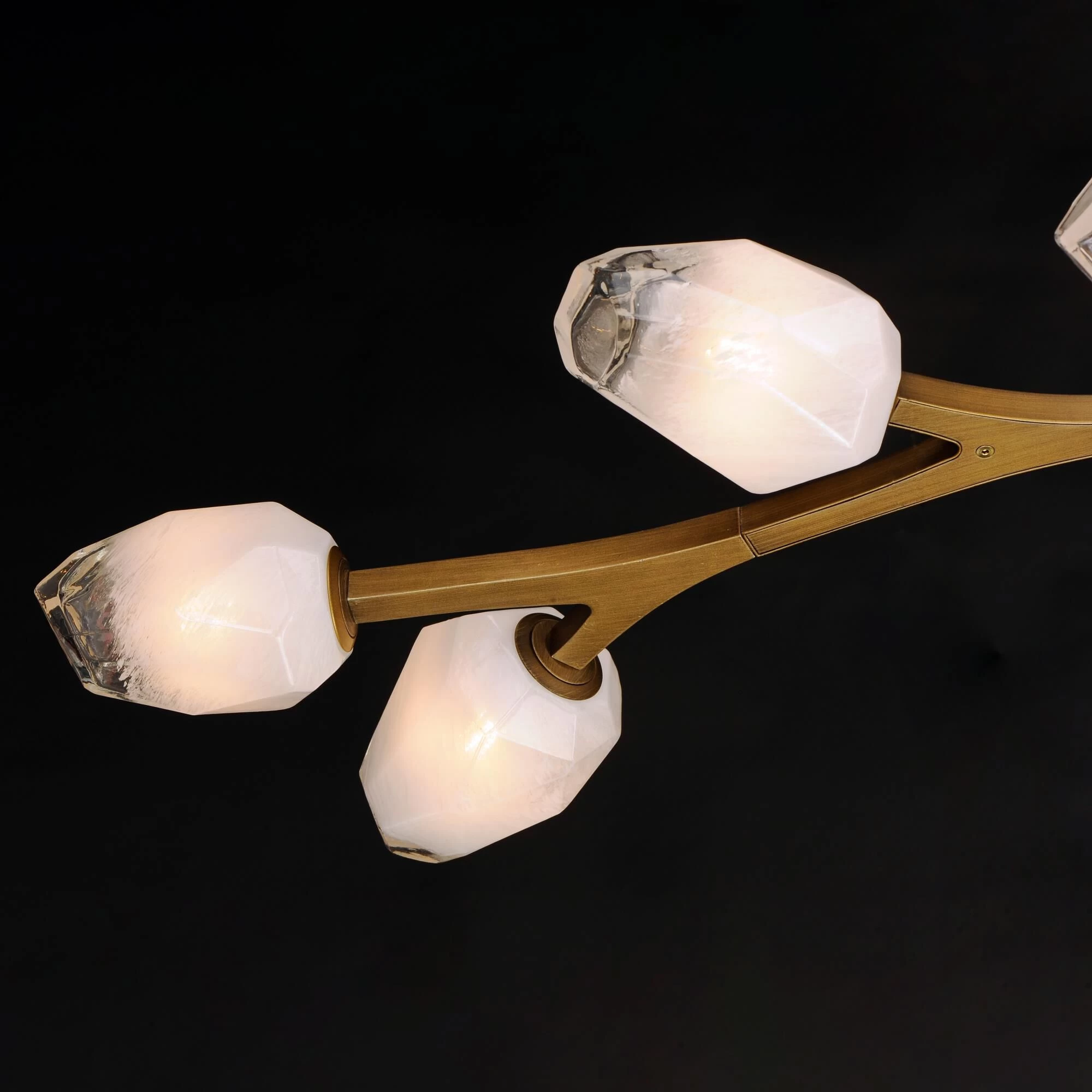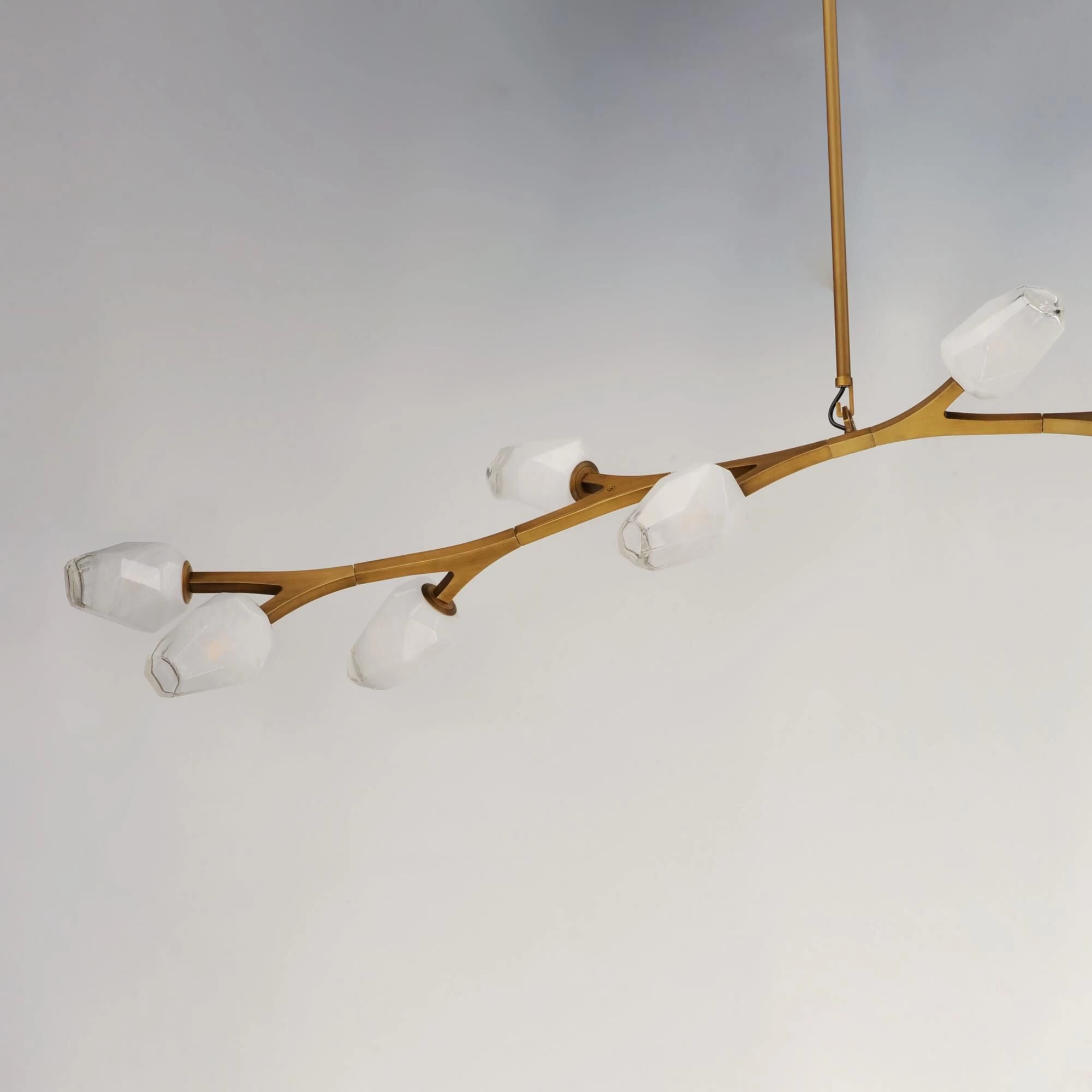 A branched frame inspired by a close observation of nature. Finely engineered and designed in delicate detail, the soft Gold finish pairs with organically formed Morning Frost glass that is partially frosted to conceal the LED light source within. Contemporary in design and soft in nature, this collection complements both modern and transitional aesthetics.