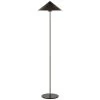 Silvery nickel accents pop out against the black finish of this metal floor lamp. A slender stick body lends a contemporary look and feel and is accented with a linen drum shade and a single pull chain.