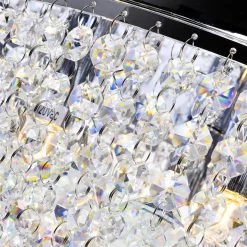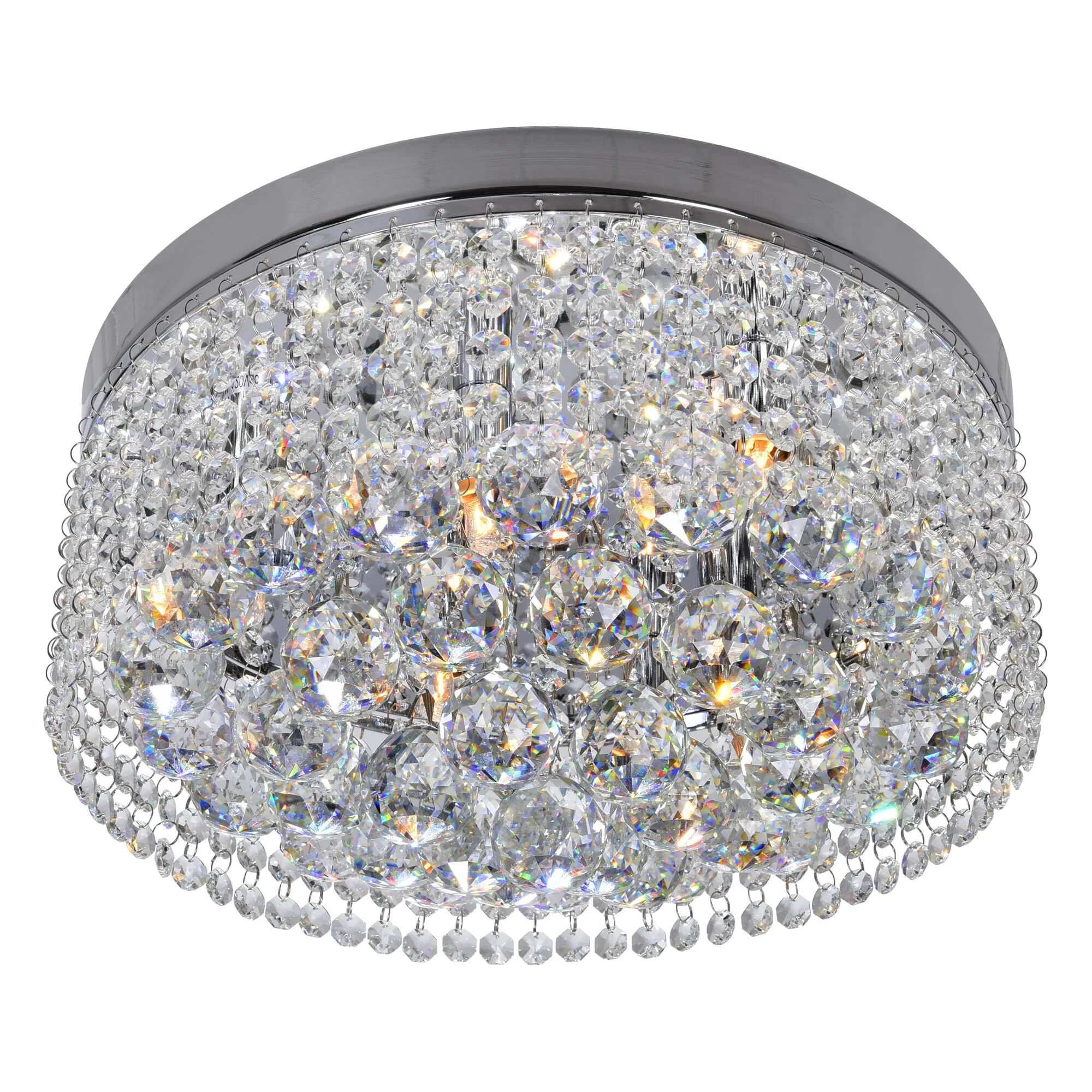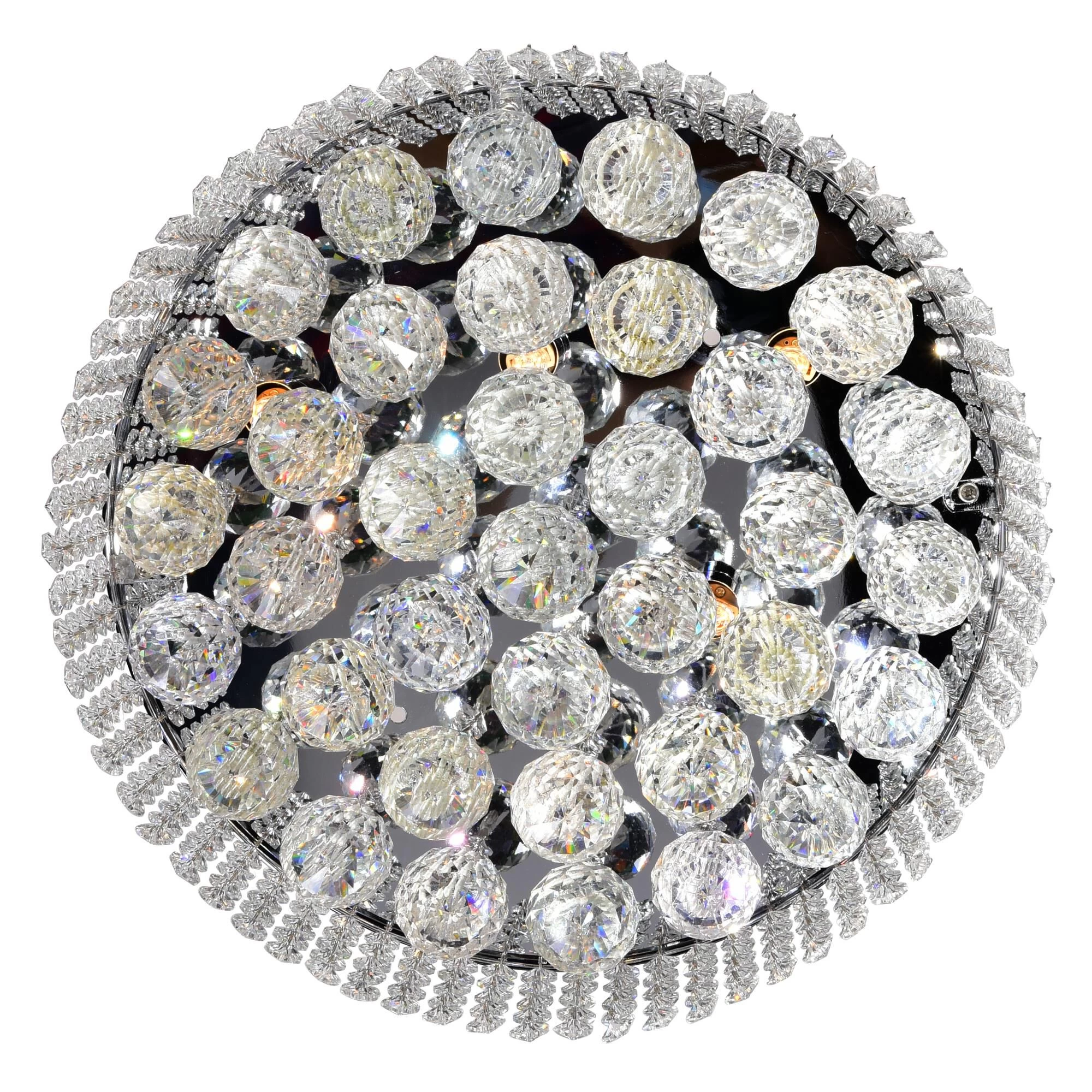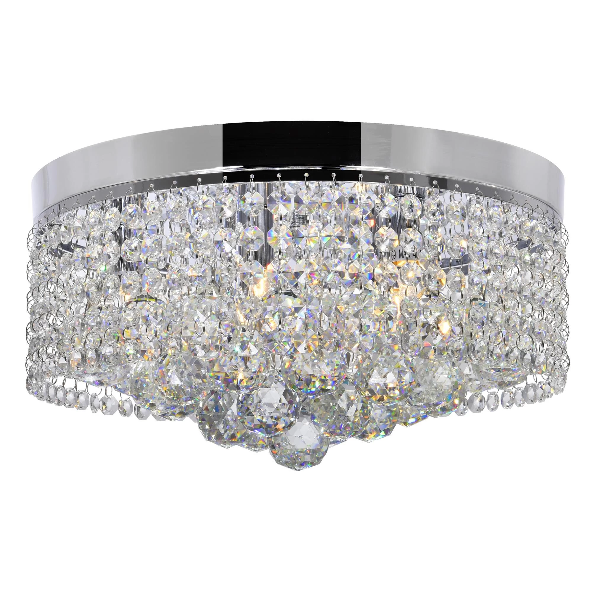 An excellent crystal lighting option for your dining room, living room, or foyer, the Cascade 6 Light Flush Mount will lend a regal atmosphere to wherever it is placed. Its circulate canopy is finished in polished chrome and is to be installed close to the ceiling. Acting as shade that diffuses light is a circular assembly of crystal strings. Underneath the chrome plate are crystal ball drops that reflect and refract a glistening glow.