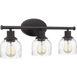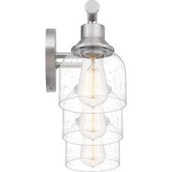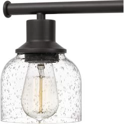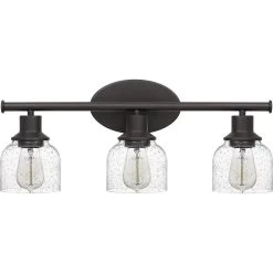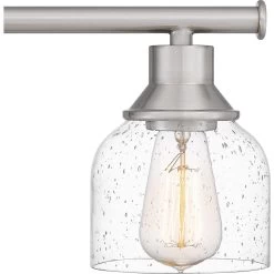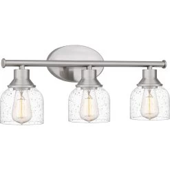 Caverly is the perfect companion to coastal or farmhouse-inspired design. Clear seedy glass shades cast an alluring glow, while the clean lines of this bath light add in a dash of timeless appeal. Choose from three or four lights in brushed nickel or bronze, two classic colorways. Orient the glass shades facing up or down to suit your distinctive style.