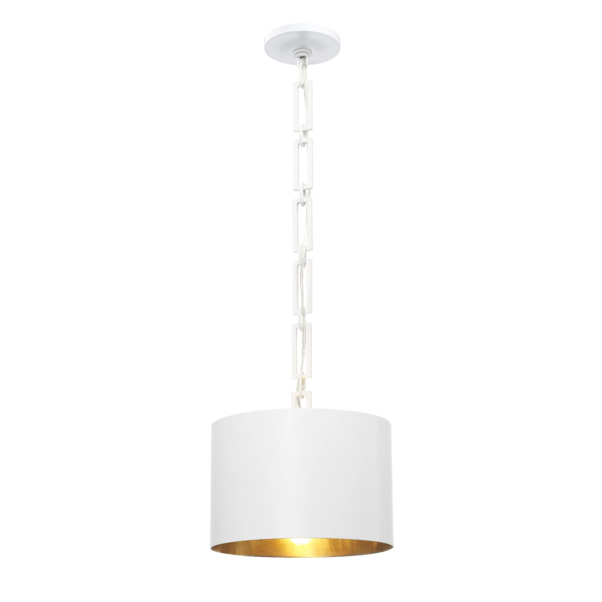 The Alston Collection takes a classic drum shape and adds a distinctive chunky metal chain, with varying link sizes, to make it shine. The cylindrical metallic light works well paired in multiples above work spaces and kitchen islands or singularly in vestibules and hallways. In addition to its simple lines and oversized rectangular chain, The Alston Collection sports a versatile two-tone finish.