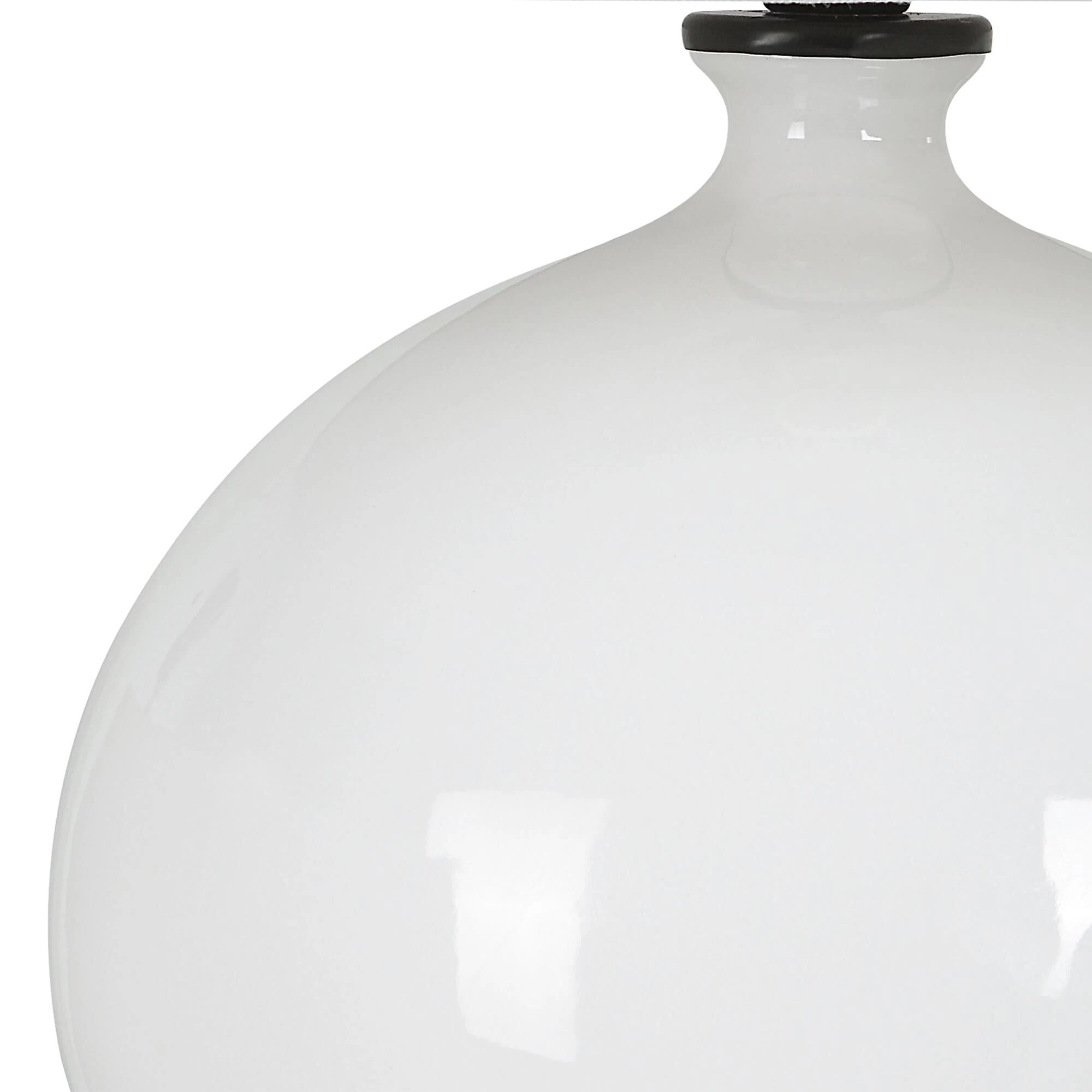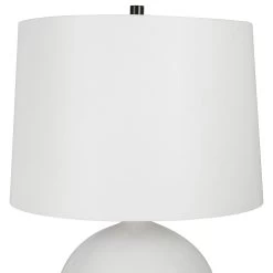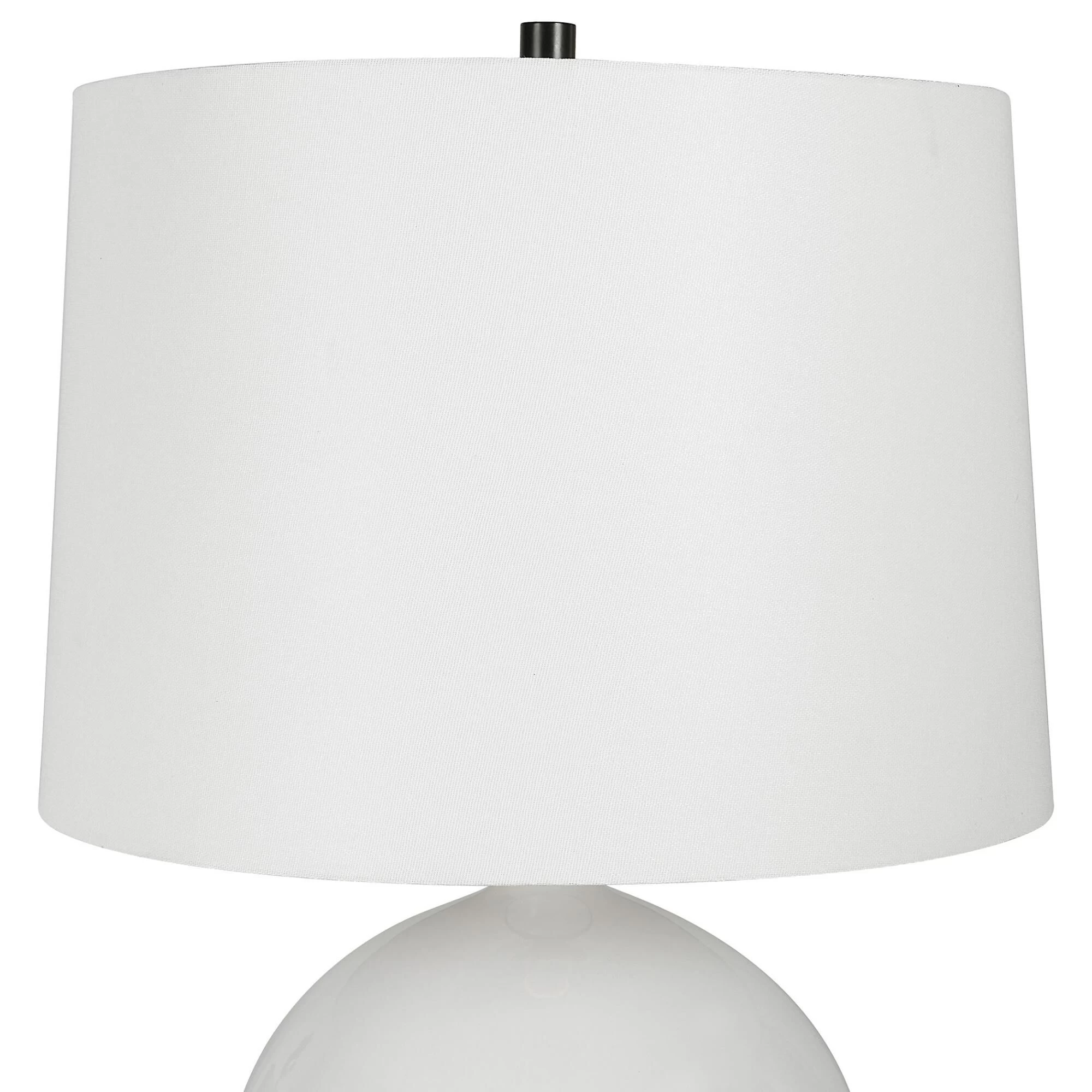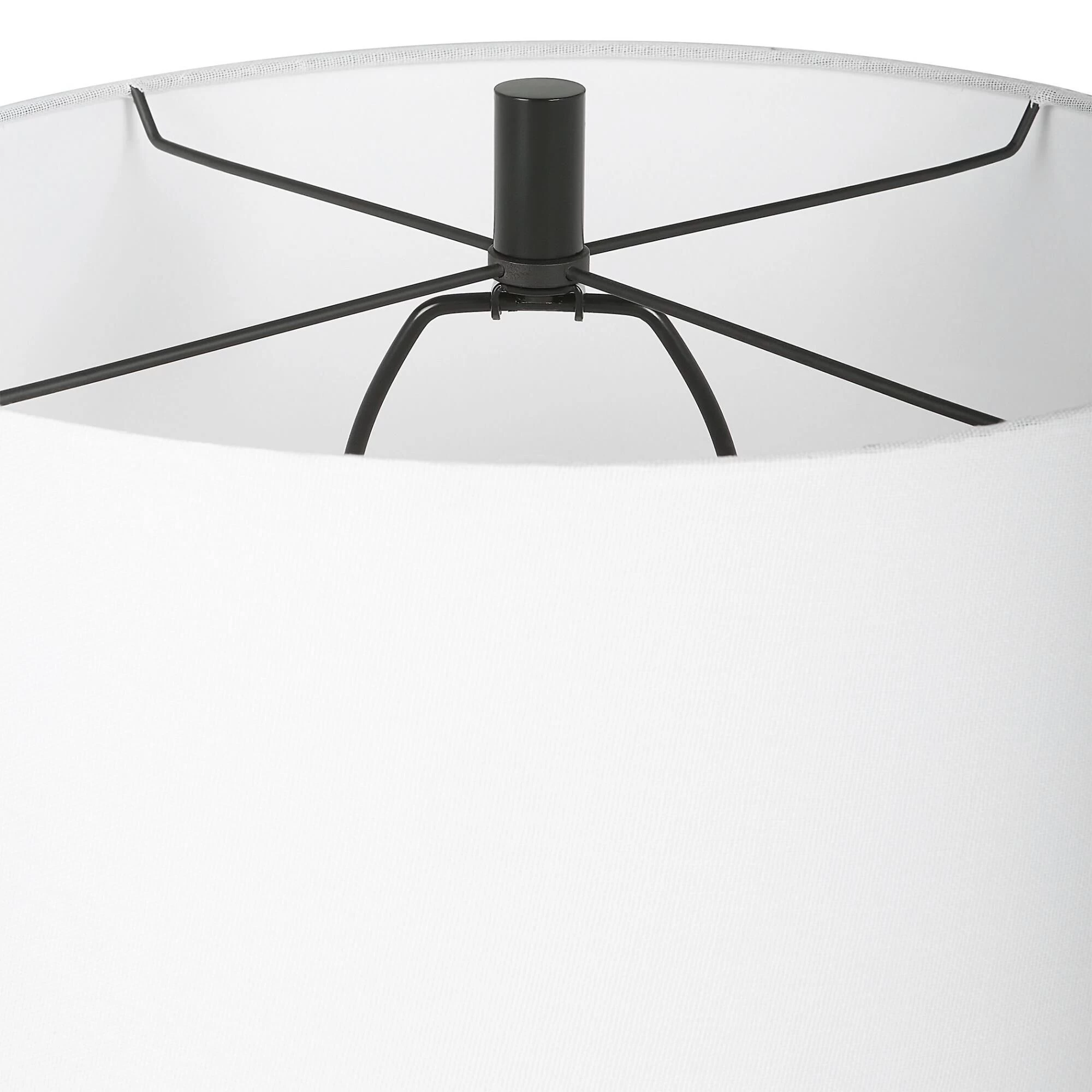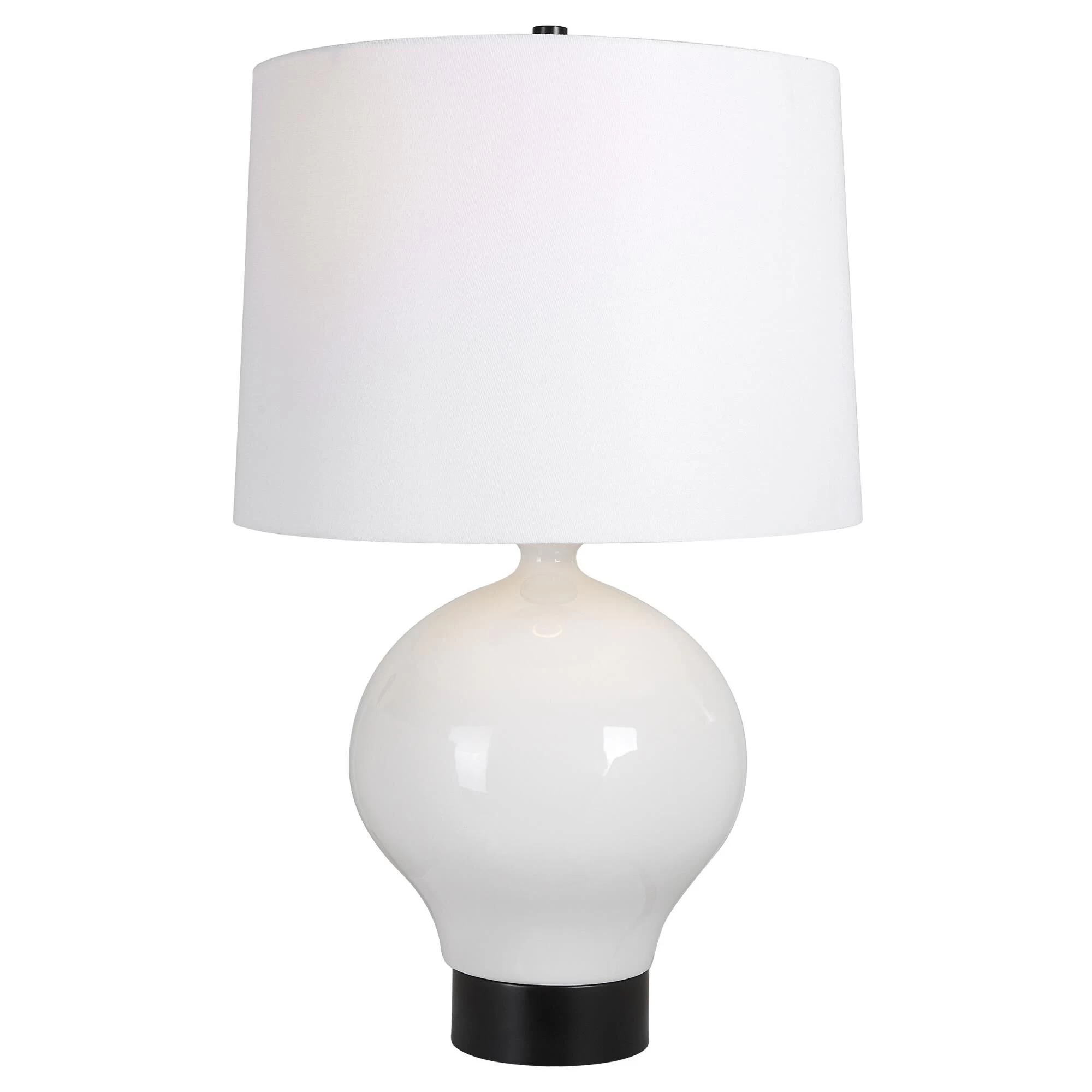Simple Yet Sophisticated, Our Collar Table Lamp Is Designed With A Rounded Ceramic Base Finished In A Gloss White Glaze Accented With Satin Black Details. The Tapered Round Hardback Shade Is A White Linen Fabric.