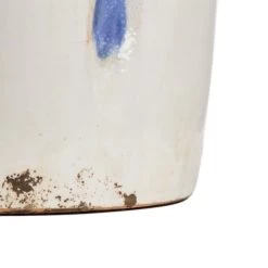 HAND-THROWN ITALIAN CERAMIC PINCH POT WITH AGED CREAM, WITH COBALT DESIGN