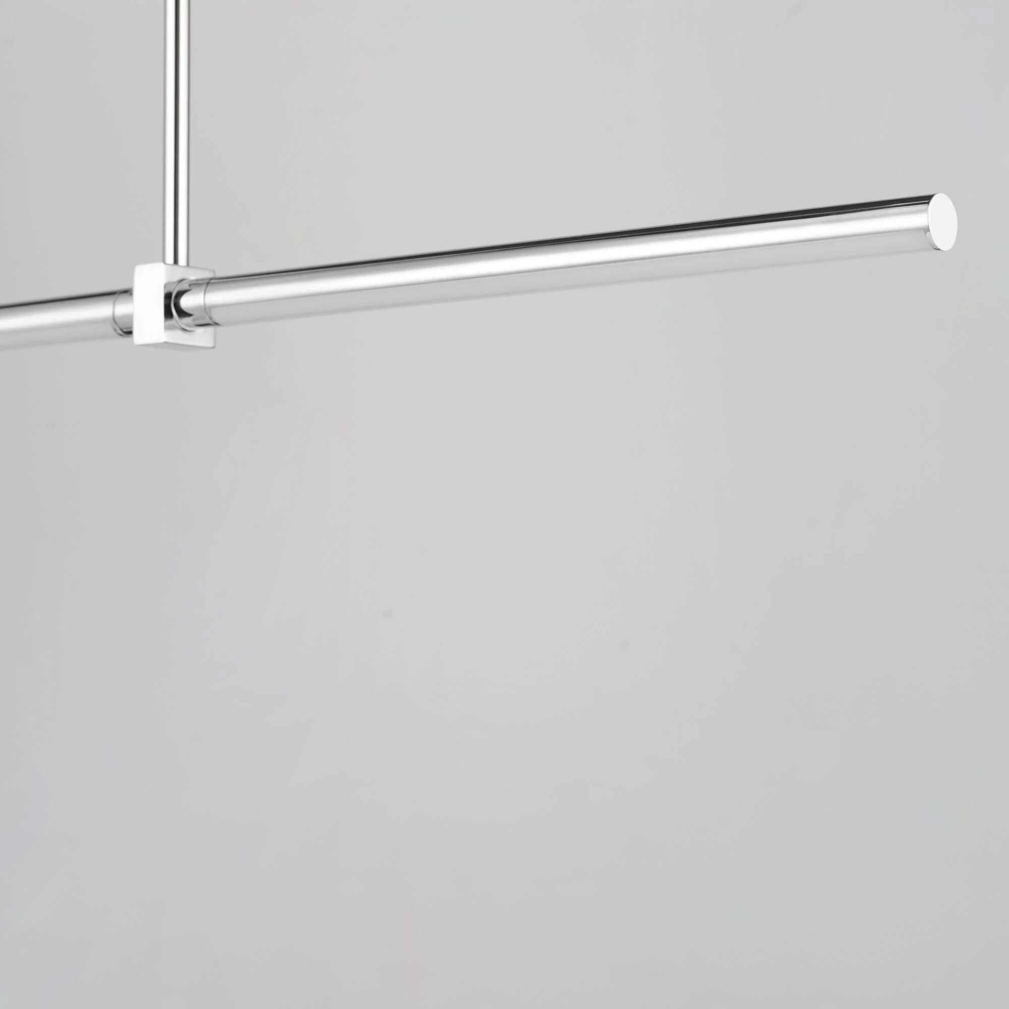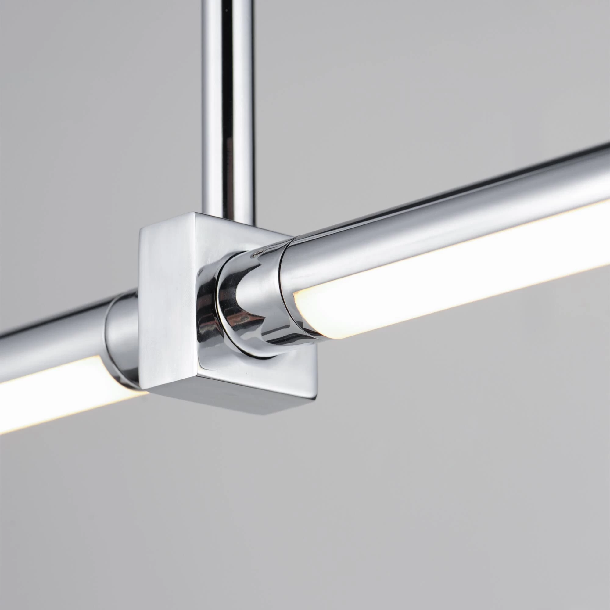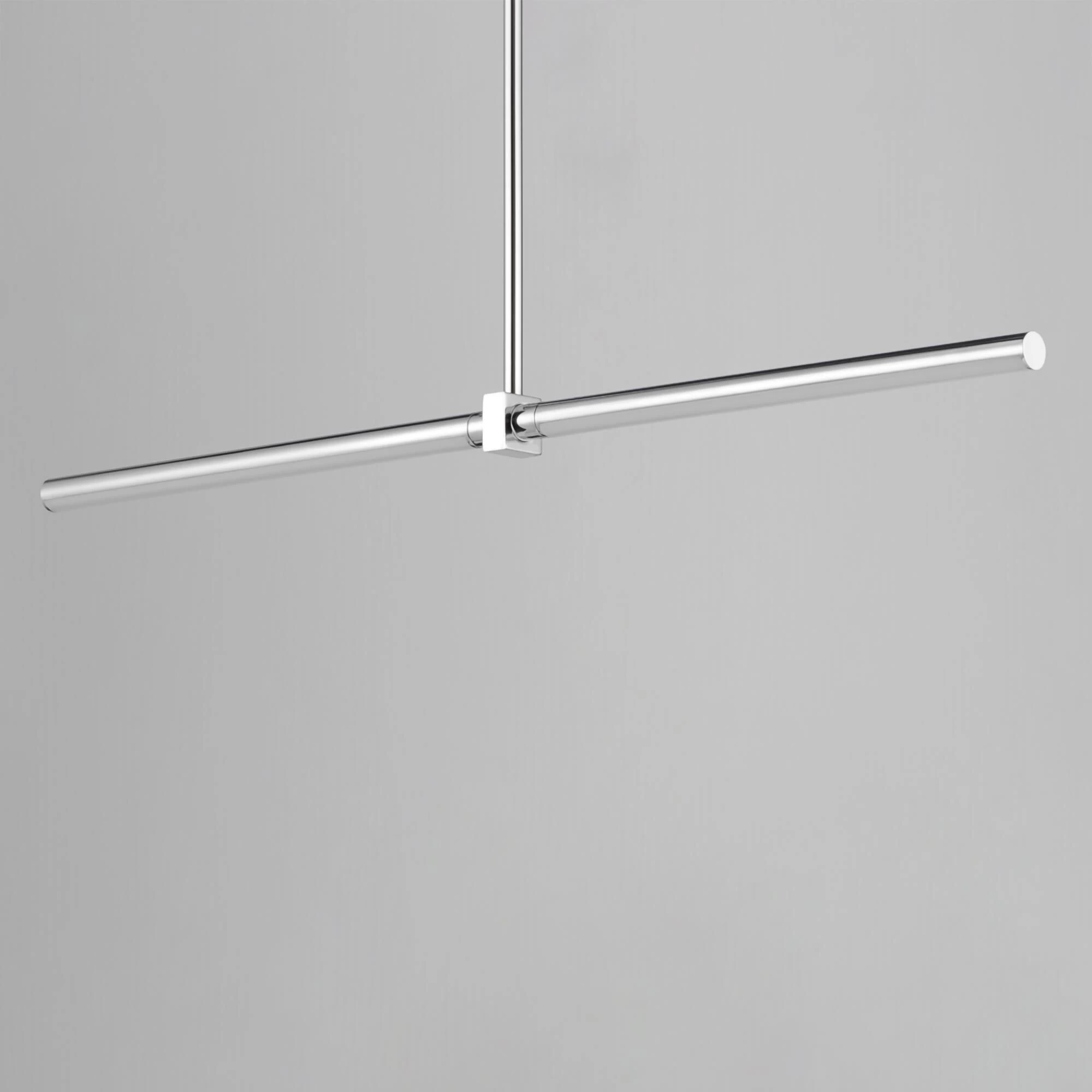 A bold and timeless sconce, Dorian features a sleek, square block support with two cylinder LED tubes horizontally extended. These tubes rotate individually to allow the LED light unique positioning. The collection features linear and vertical pendant configurations with slender profiles that offer enhanced visibility. The elongated vertical pendants are perfect to light lofty spaces. Their rotatable extensions direct the light along areas such as stairwells and can highlight artwork and collectible displays at taller heights. The wall-mounted sconces offer similar features with additional streamlined back plate designs that mounts to either a single gang junction box or common 3-0 or 4-0 boxes with cover plate included. These sconces suit light portraits, shelves, or work as bath vanities. They extend less than four inches in compliance with ADA standards. Available in Matte Black, Polished Chrome, and plated Gold, this collection is a subtle, handsome design with timeless appeal.
