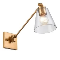 The East Point vanity and hardwire light collection has geometric influence, with large angular handblown clear glass shades and cylinder hardware.