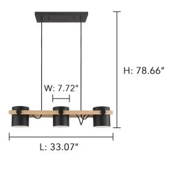 Eglos Hornwood family has a minimalist-modern meets vintage style. This 3 Light Linear Pendant fixture with 3 matte black cylindrical shades and cream colored interior, along with its wooden accent, provide unique style to your living space. This contemporary piece blends well with numerous interior designs. Great for studios, offices, coffee bars, and more.