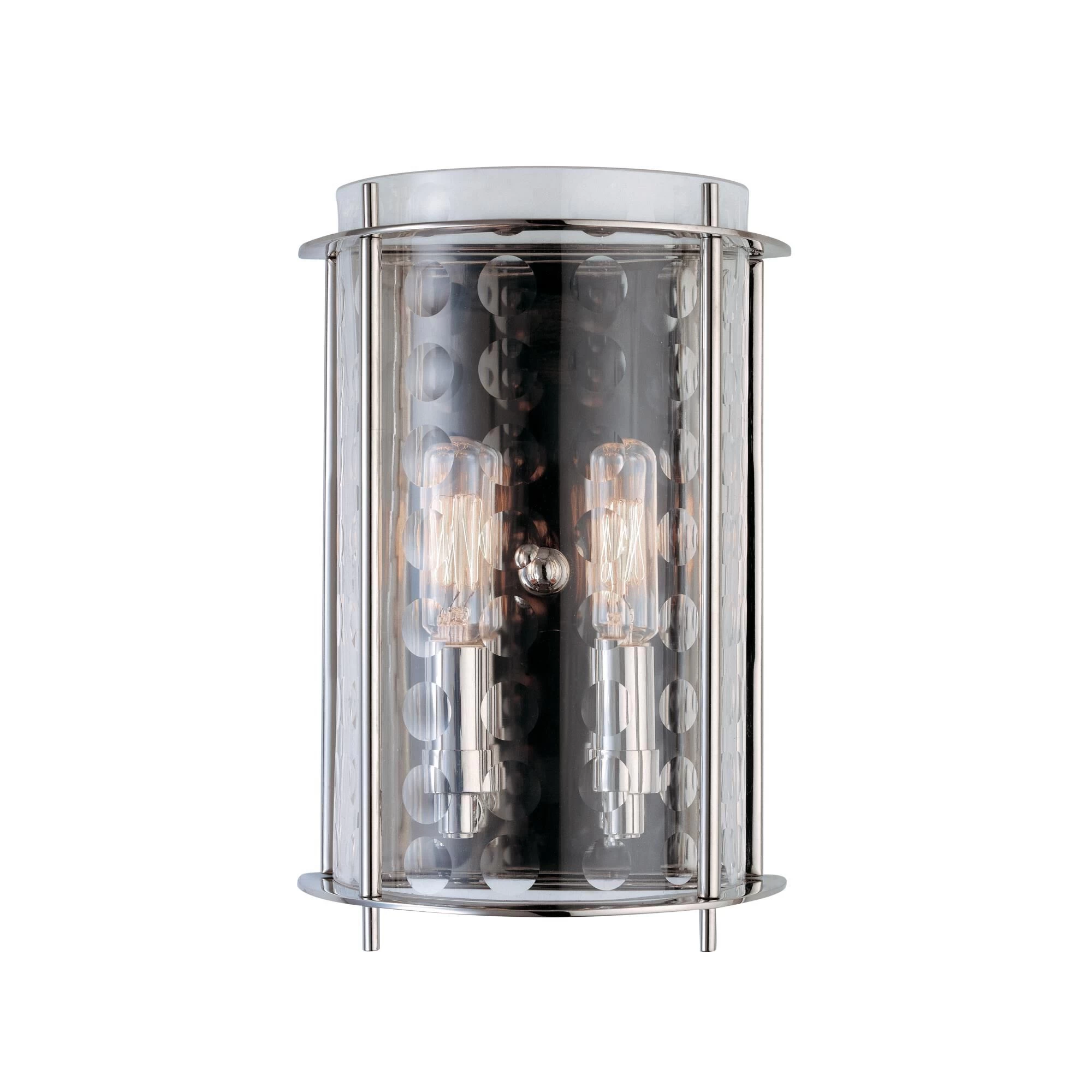 Our textural Esopus family reinvigorates Craftsman design with a stunning twist. Within cast metal frames, weve suspended decorative glassworkcut and polished with a pattern of concave circles for a lively op-art effect. This glass column creates a wonderful diffusion effect, as exposed-filament bulbs shine through. The hard edges of the metal square contrast with the round curve of the glass. In Old Bronze finish, Esopus evokes the Mission Arts era, while Polished Nickel gives it a contemporary feel.