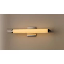 Clear glass outer tube encases a white acrylic inner tube capped with polished Chrome caps creates this clean contemporary design. Powered by high output LED which is nicely diffused make this collection suitable for both residential and commercial applications.