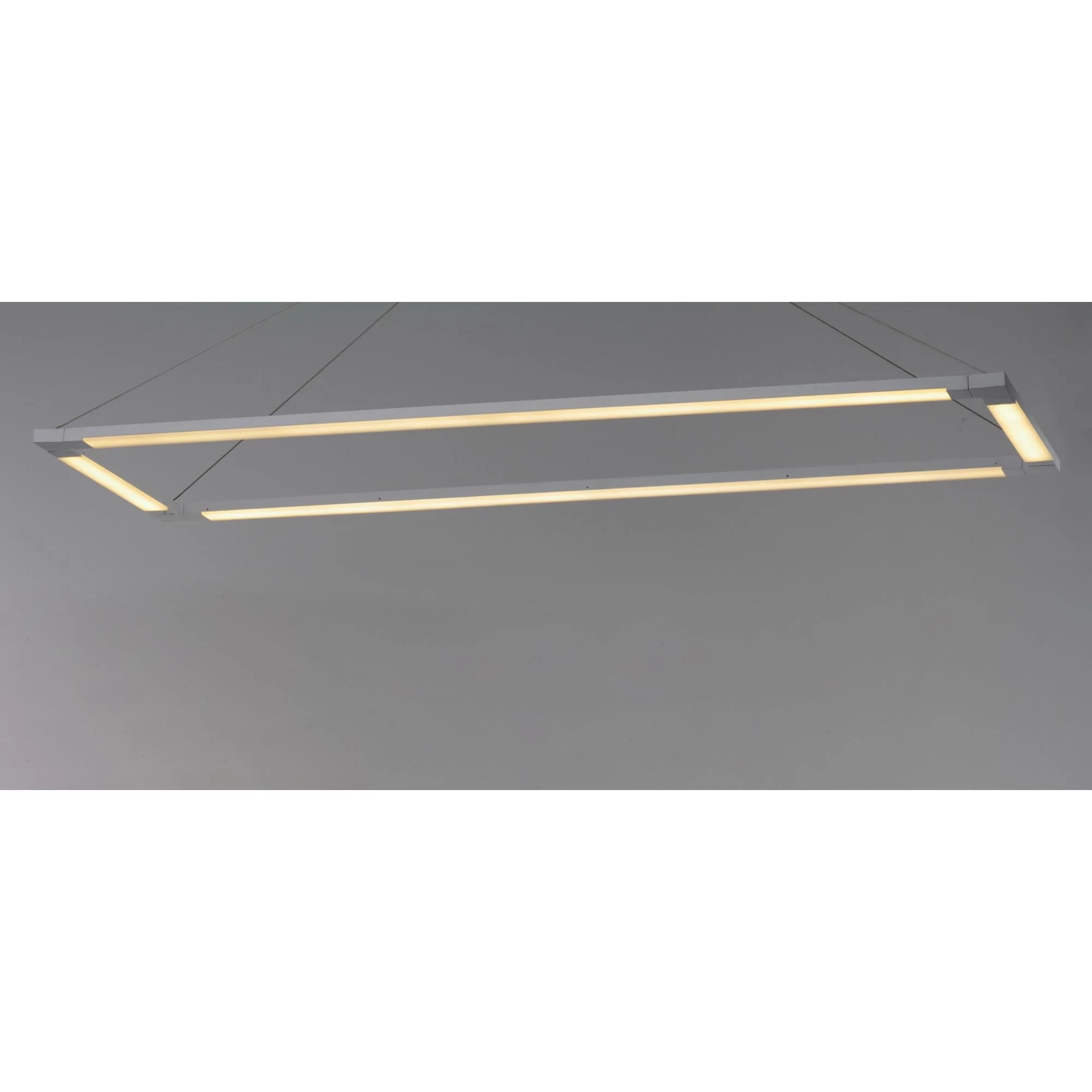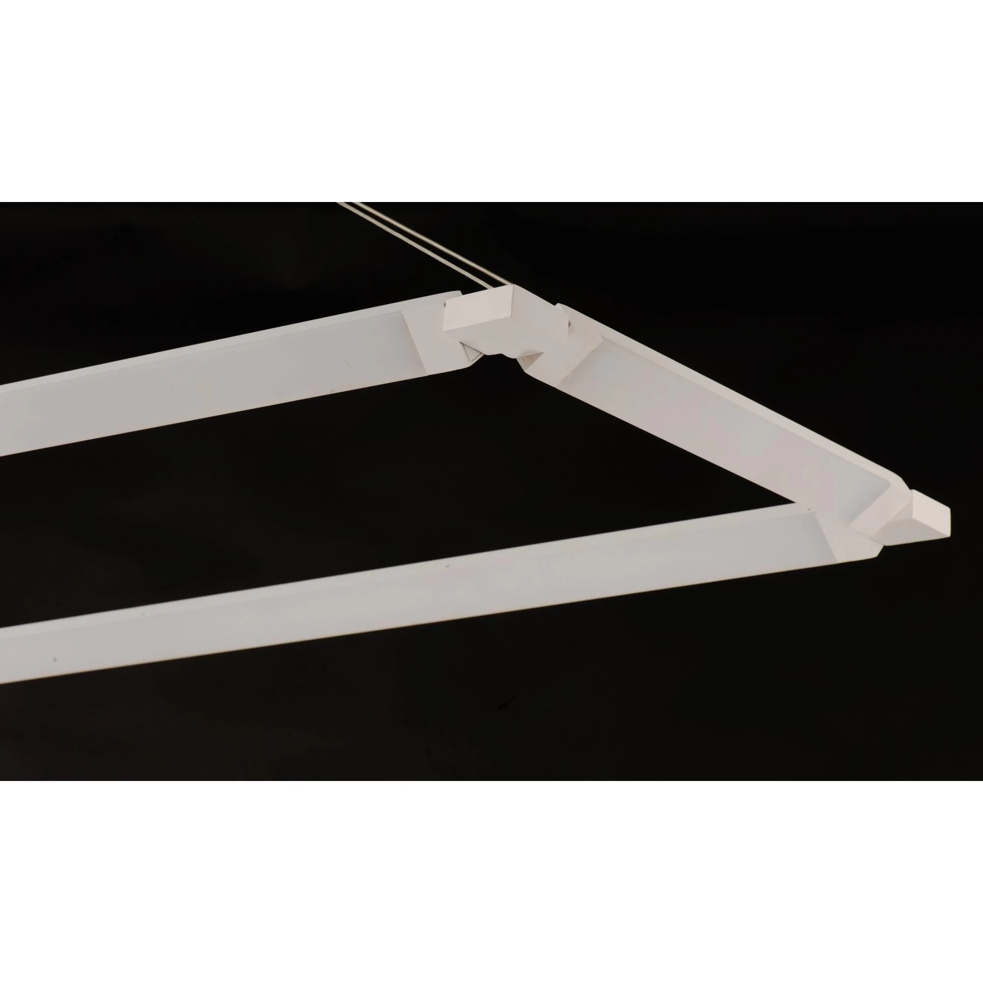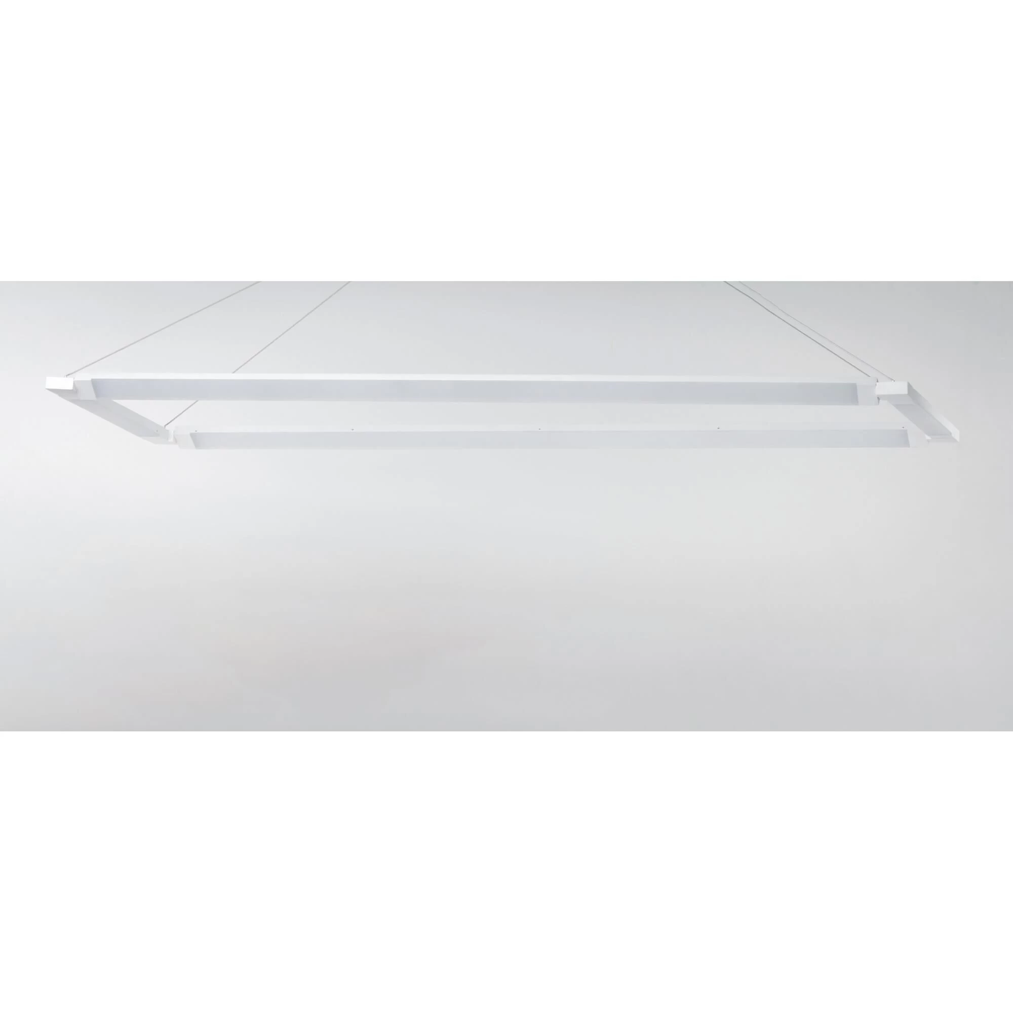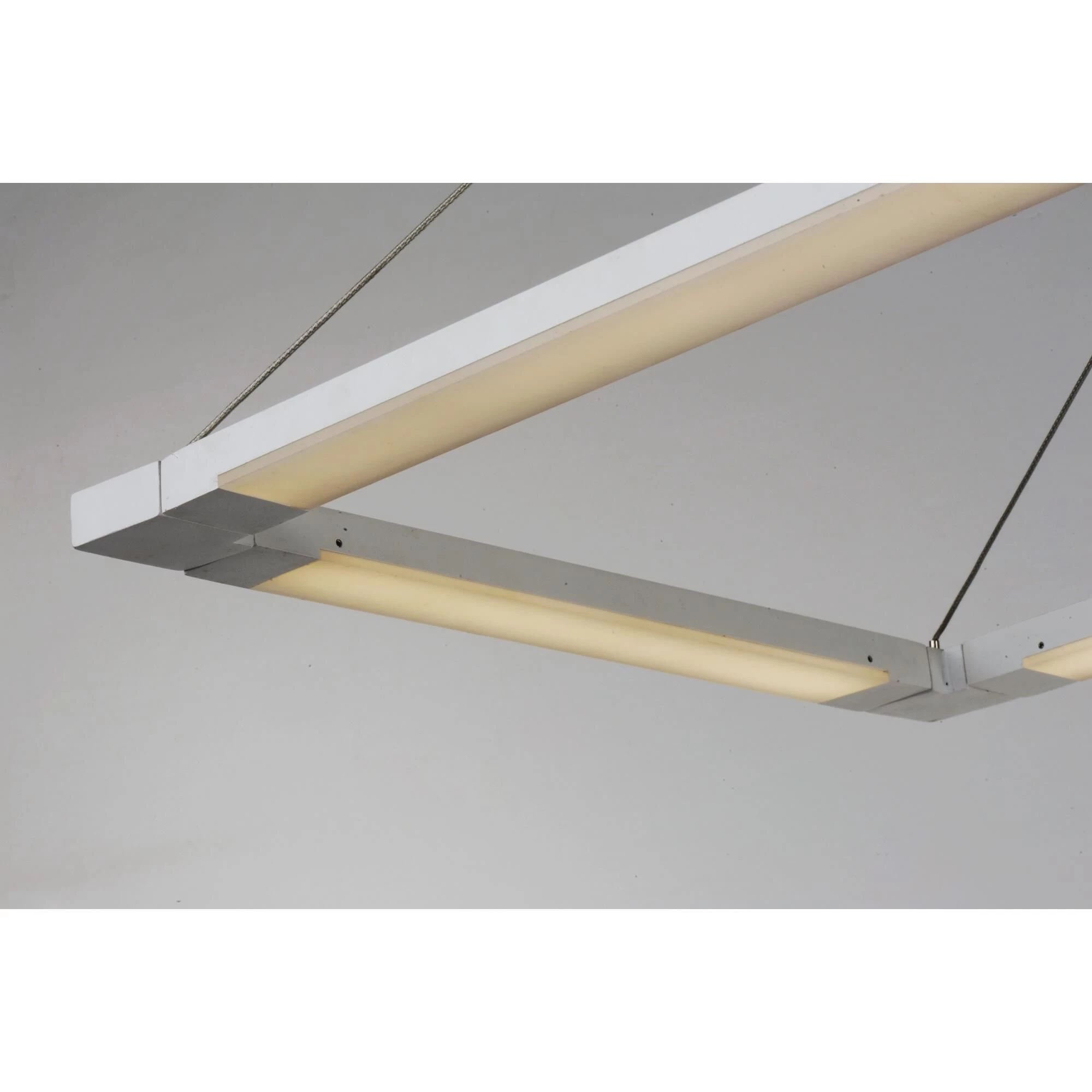 Simple shapes constructed of rectangular aluminum channels of Matte White rotate on a frame to allow for excellent control of direction of light. Alternate up and down lighting for even room illumination and unique lighting effect.