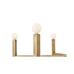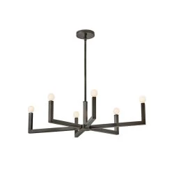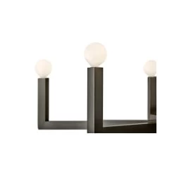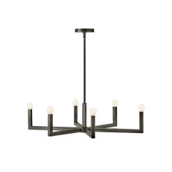 The Ezra family stunningly pairs minimalist elegance with industrial edge. Strong square arms set at 45 angles intersect to create a rounded chandelier and oval linear chandelier design in Black Oxide and Heritage Brass finishes.