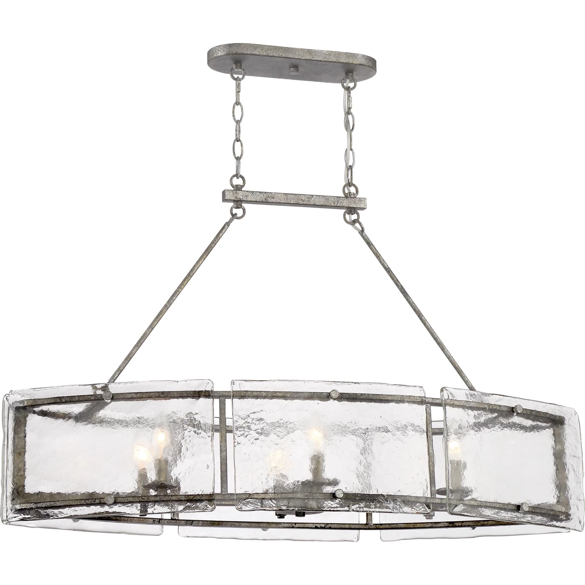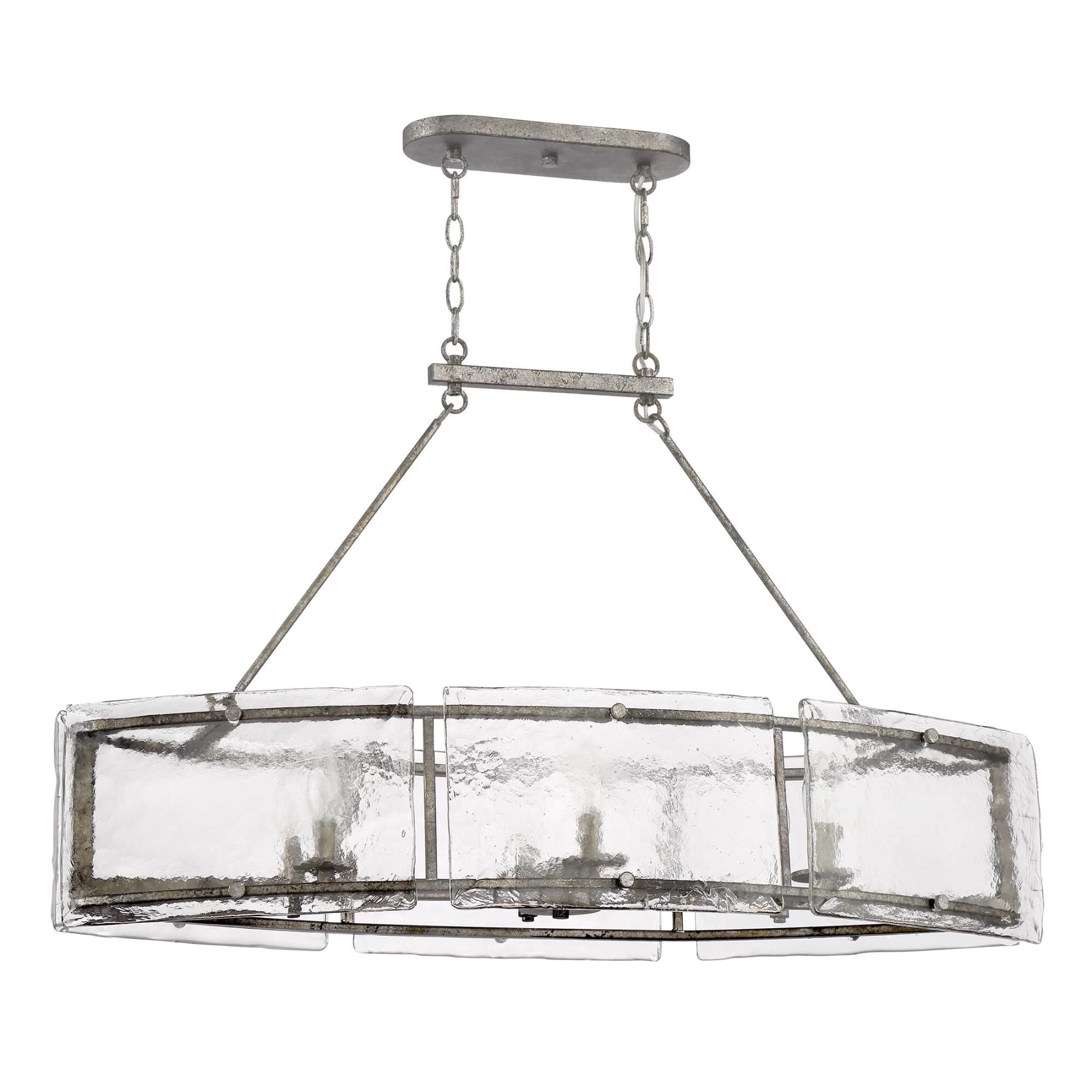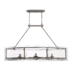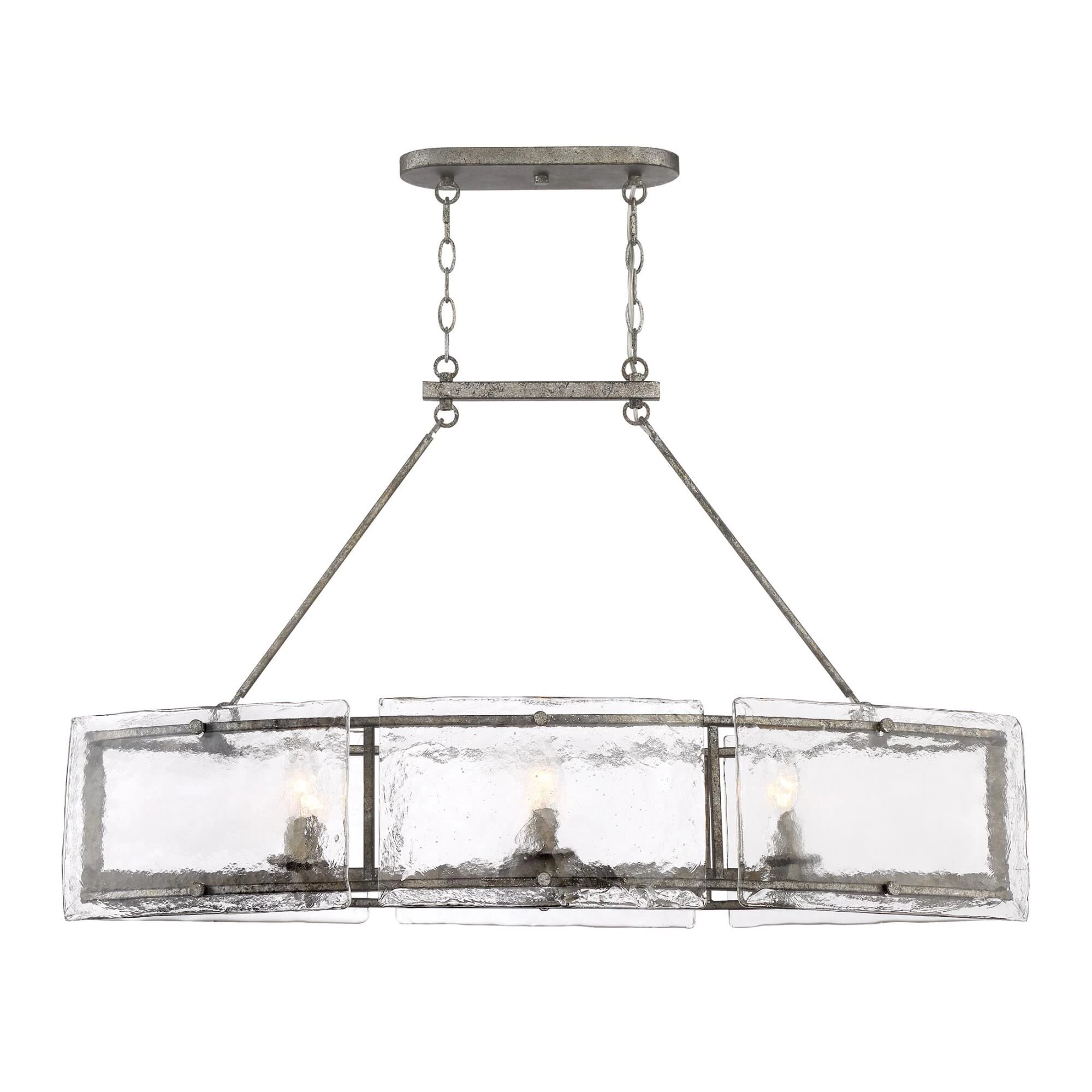A thoughtful use of materials and rustic styling give the Fortress an artisanal edge. Thick slabs of textured glass float around the mottled silver frame, secured with coordinating bolts. A hazy treatment of the glass is reminiscent of days gone by.