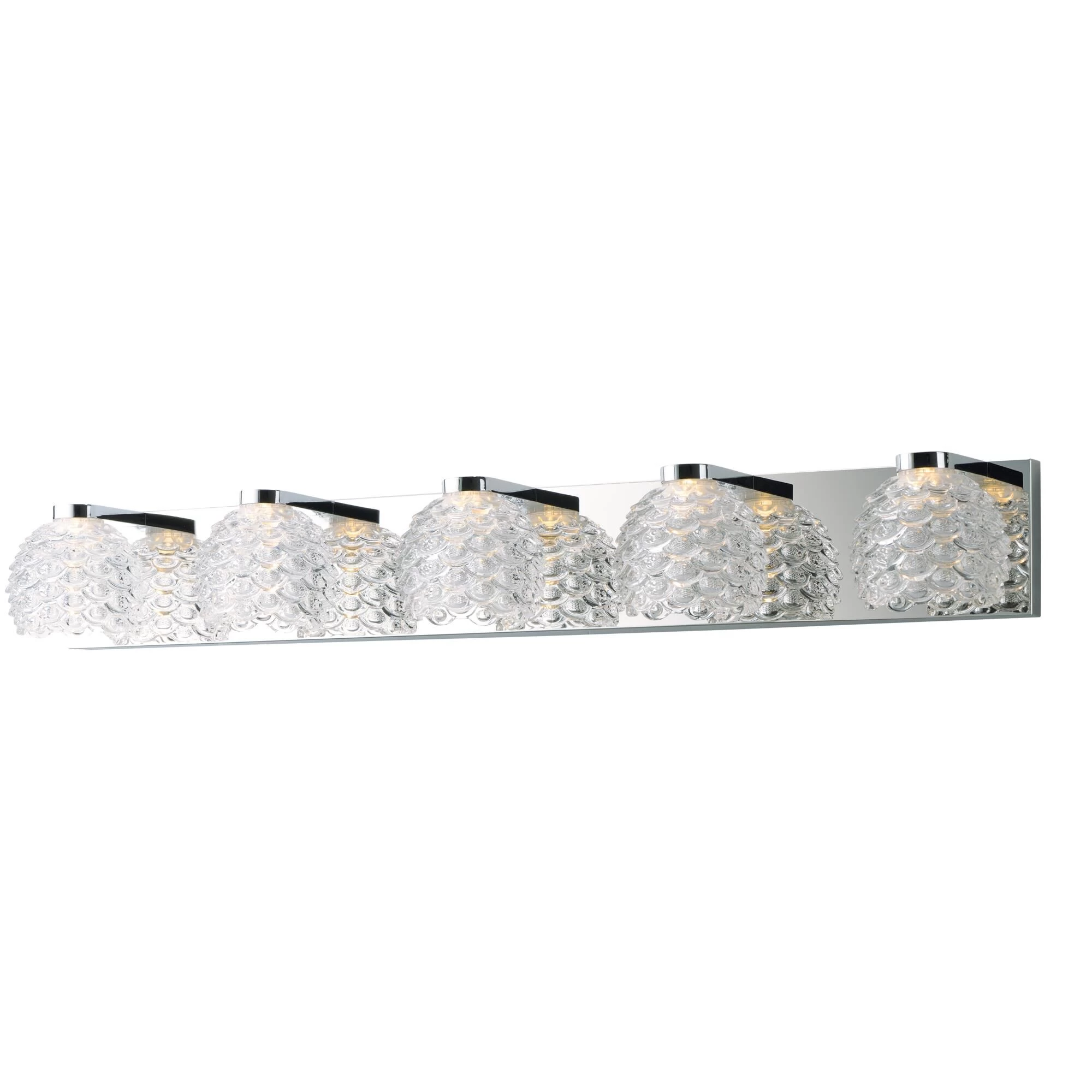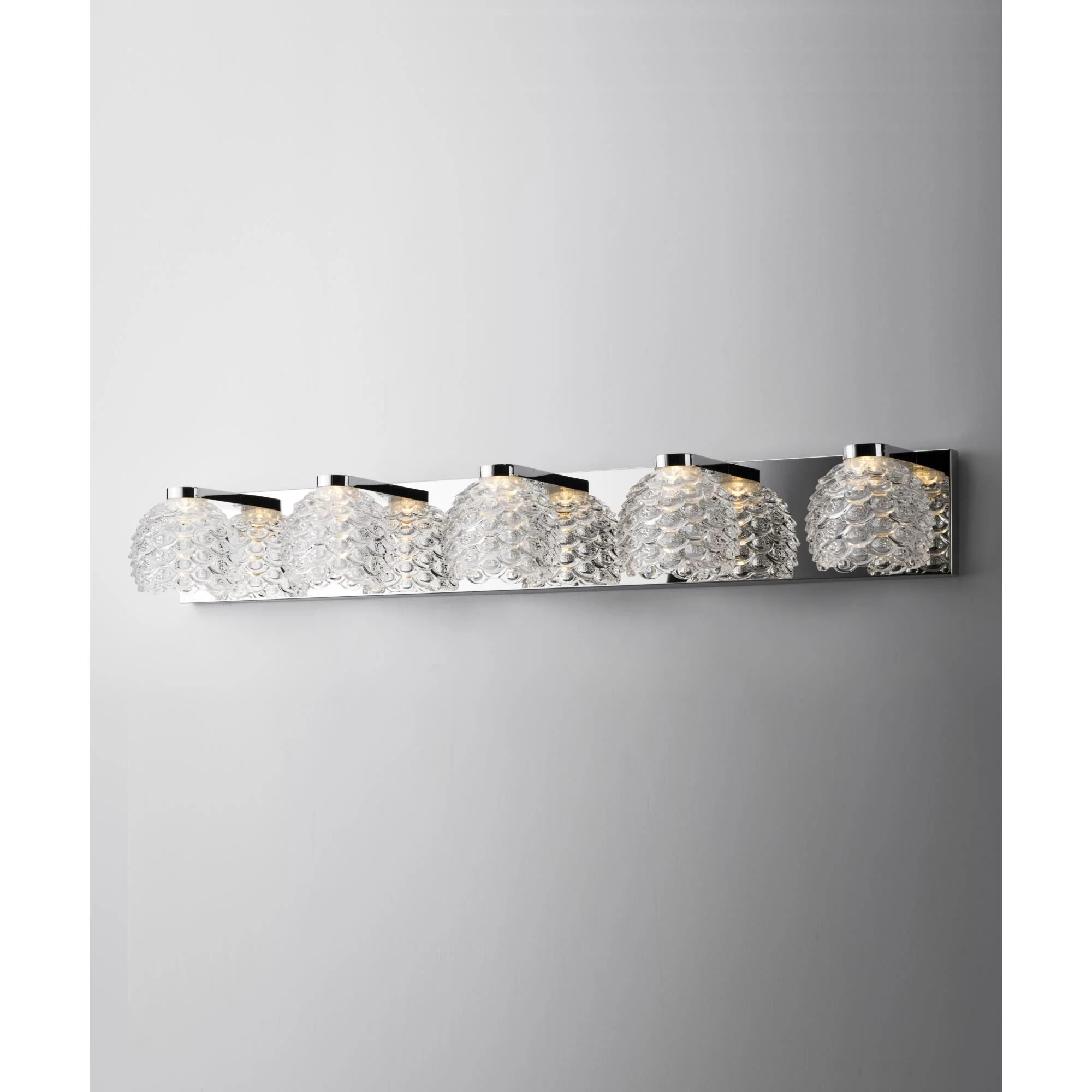 Classically designed Clear Wave glass adorn contemporary frames of Polished Chrome providing a transitional look for any style of decor. Powered by integrated high power LED, these vanity fixtures are as functional as they are beautiful.
