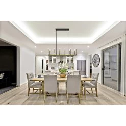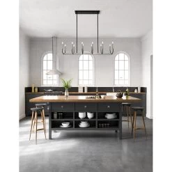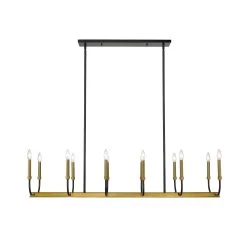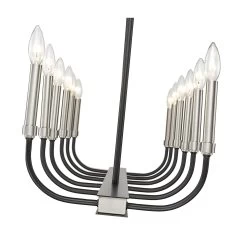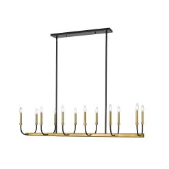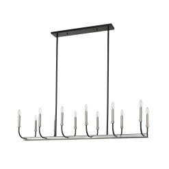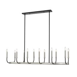 This bright two-tone twelve-light island/billiard light adds a dynamic elegance to your favorite space. It’s crafted in a classic matte black and brushed nickel finish with the lights in a candle-like design. It’s ideally suited for the dining room, foyer, kitchen, or entertainment room.