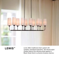 Lewis offers traditional charm paired with updated, transitional elements. Tall natural paper shades feature fine stitching detail against a Black Oxide finish to enhance timeless interiors.