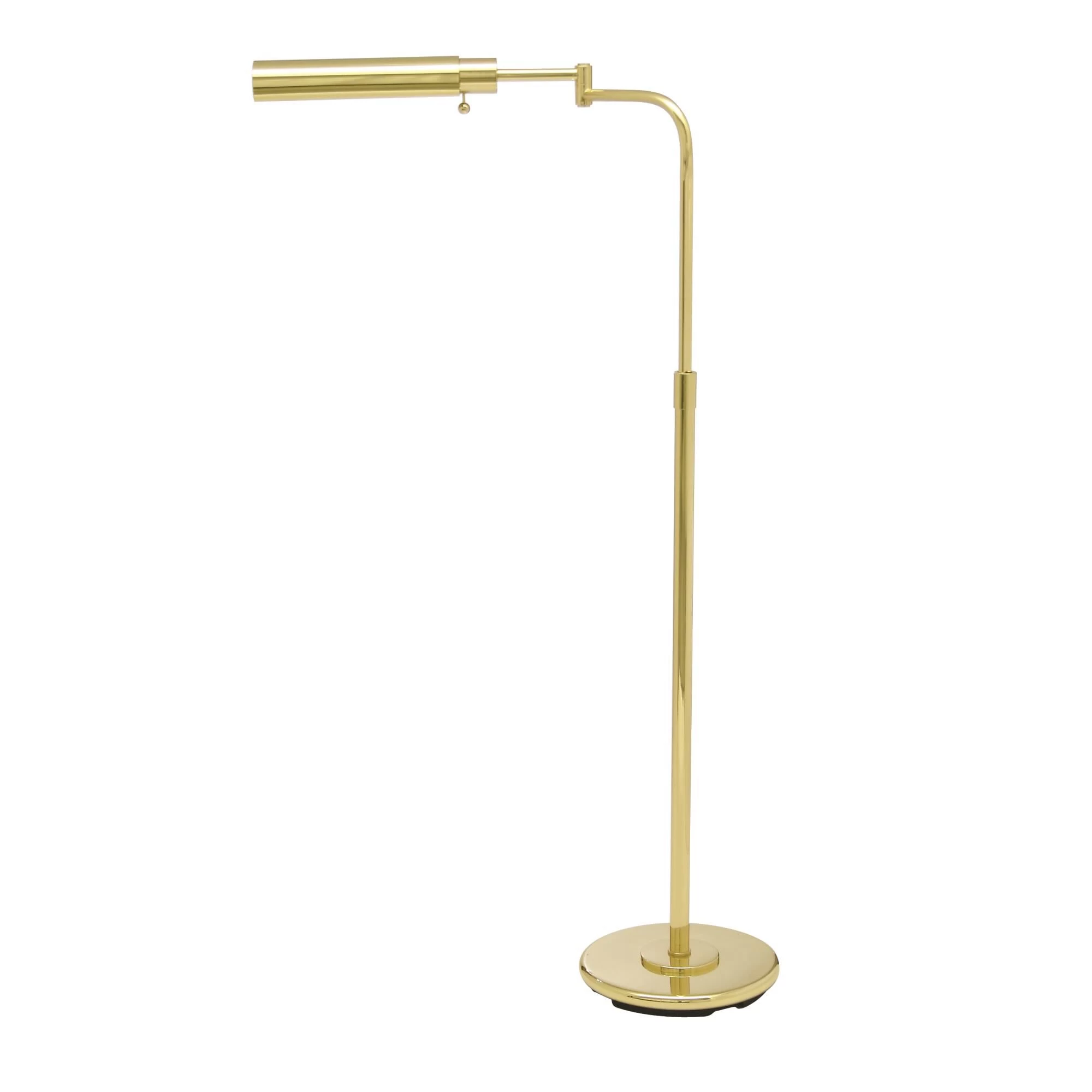 Base dimension is 10.5 inches round. Shade dimensions are 10 inches by 2 inches. Fixture comes with a 10 foot clear cord. The height of this lamp is adjustable.