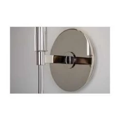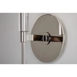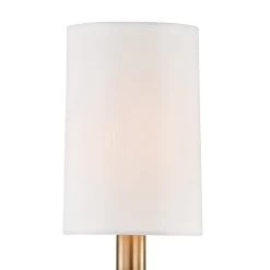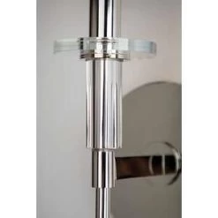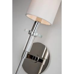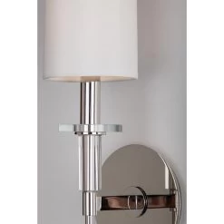 The elongated torch handles of our Amherst family shun needless complexity, resulting in smooth sophistication. Crystal accents give it a 21st-century twist. White fabric shades top the tall tapers, complementing the cylindrical shape of Amhersts crystal bobeches.