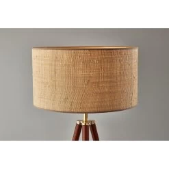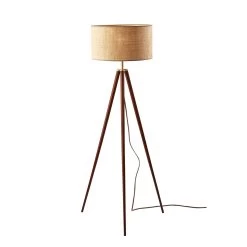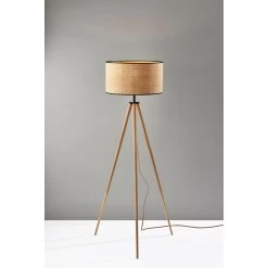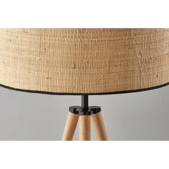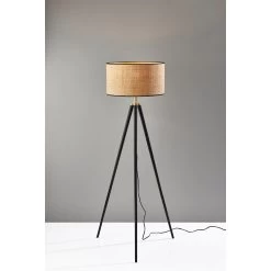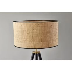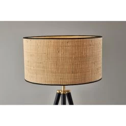 The Jackson floor lamp adds natural elements to the contemporary tripod design for a stunning complement to any dcor. The black wood tripod base is sturdy and stylish and features antique brass detailing. Topping the lamp is a short natural rattan drum shade that highlights the texturing of the material as it disperses the light from a 150W bulb. The lamp shade is also trimmed with black fabric along the top and bottom to match the black base. A 3-way rotary socket switch provides a variety of lighting options, allowing you to easily adjust. the brightness between low, medium, and high, while the lamp is powered by a 5′ cord covered in black fabric. The Jackson floor lamp is also available with natural wood to complement farmhouse style or a walnut finish for a traditional feel. Complete your dcor with the coordinating Jackson table lamp.