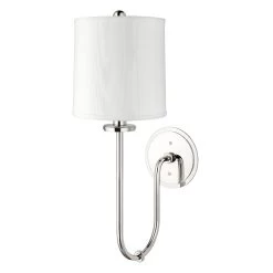 Dipping steeply from a circular backplate, Jerichos curved arm gives the sconce impressive stature. Extending over ten inches from the wall to accommodate a generously scaled shade, Jericho is an eye-catching accent piece designed for spaces in search of a statement maker.