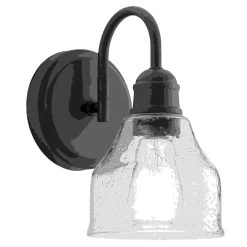 Offering convenience and ease in coordinating with other lighting options, the Avery 1 Light Wall Sconce is truly as versatile as it is beautiful. Its clear seeded glass provides a beautiful, ambient lighting to the entire room and is also easy to remove for ease of cleaning and replacement. Its on-trend black finish creates a classic yet dramatic statement to any space while it complements a variety of decor, including industrial and farmhouse aesthetics.