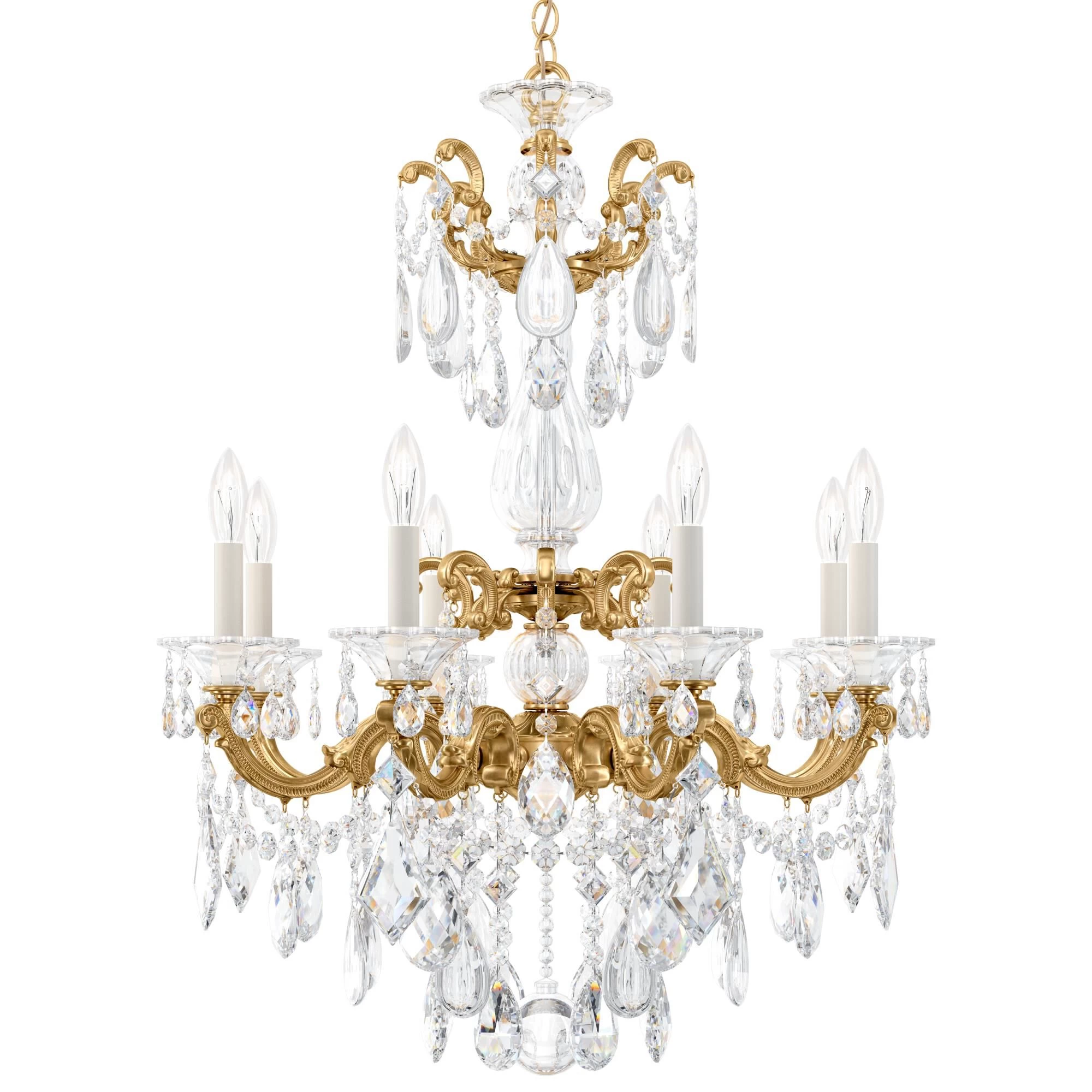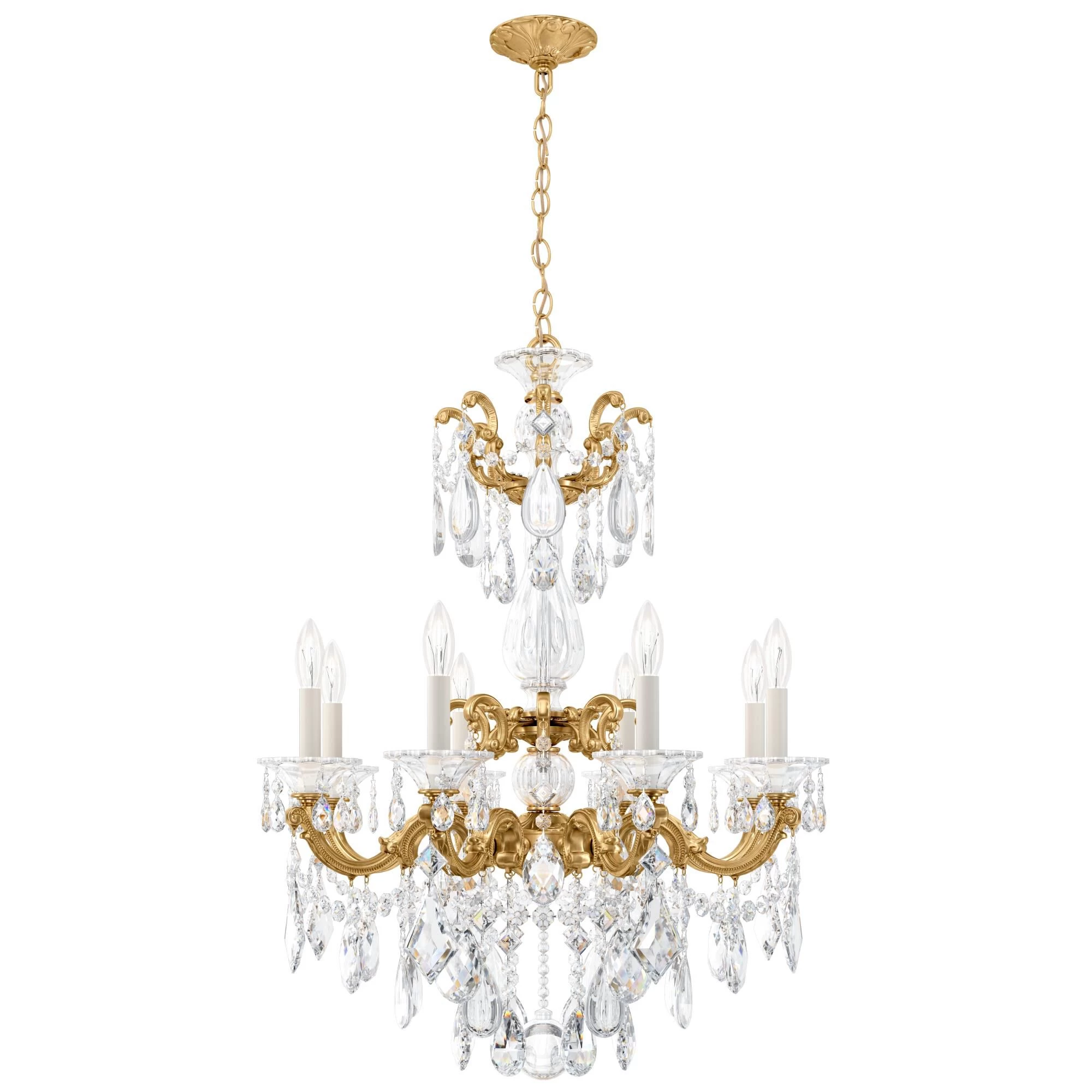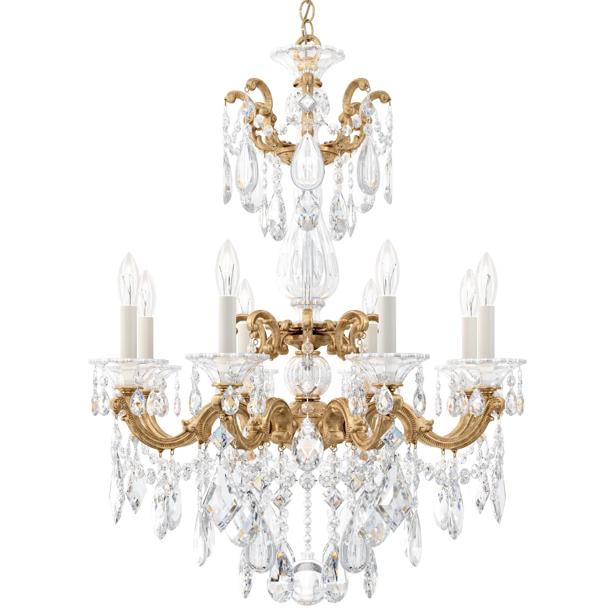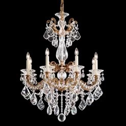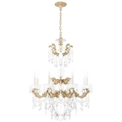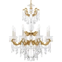 The Soft Curves, Leaf-Like Motifs, Rich Crystal Garlands And Flower-Shaped Cups Of La Scala Evoke The Sixteenth-Century Chandeliers Of The Rococo. Its Ornate Arms And Scrolls Are Cast By Hand From Schonbek Family Molds.