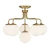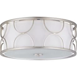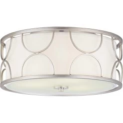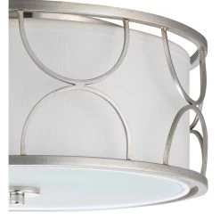 The Landree Collection’s geometric frame is designed to dramatically surround a white silk shade, presenting depth, dimension and beauty to this three light flush mount. The exaggerated scale and elegant accents are suitable for Modern and Luxury design styles.