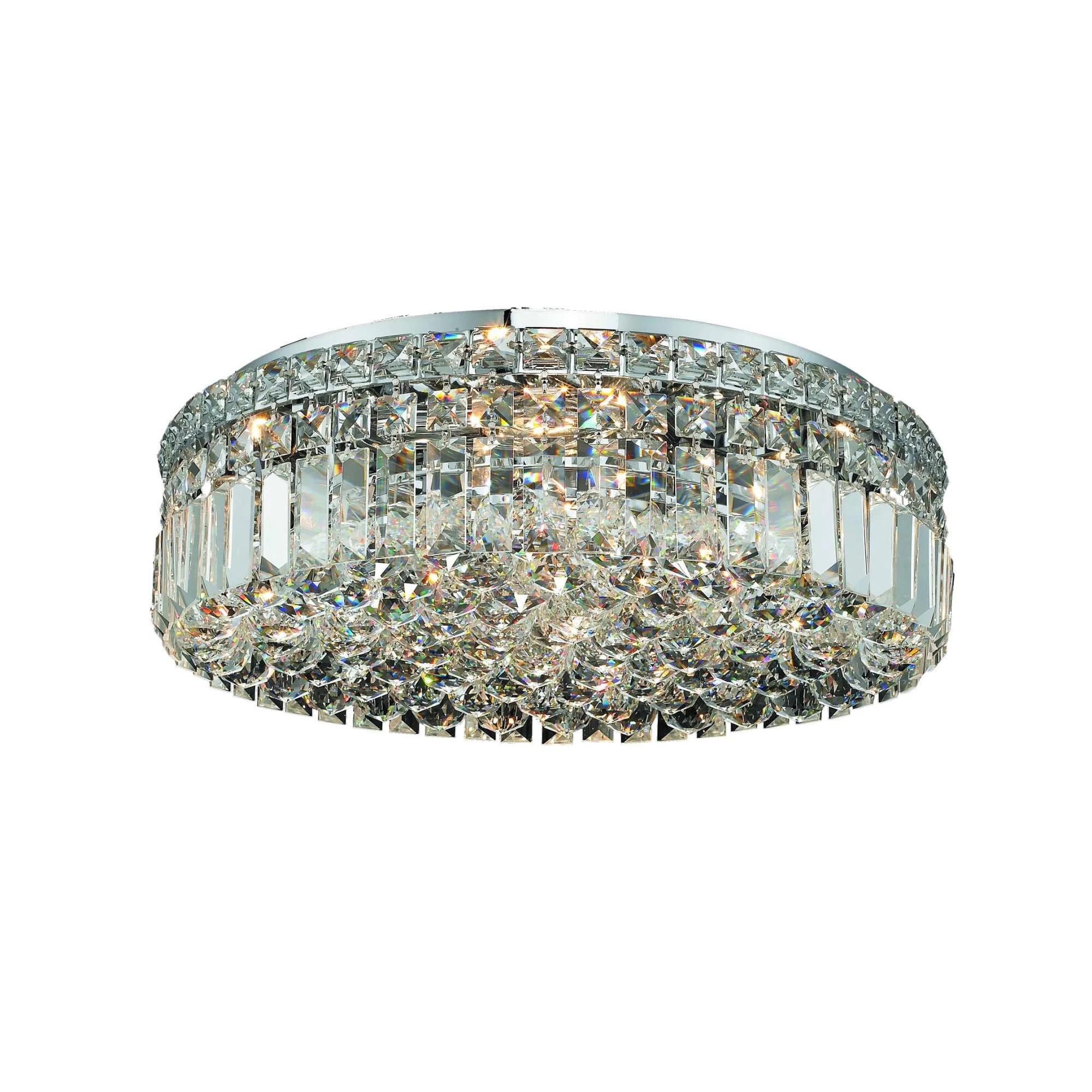A riot of shapes and textures, Maxime collection flush mounts sparkle in a mosaic of crystal tiles. Square and rectangular precision-cut crystals form the flamboyant exterior while faceted crystal balls create a bubbled effect for light to shine through beneath. Available in a chrome finish with clear crystals, these lamps are a luxurious addition to a kitchen, stairwell, foyer, or living room.