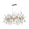 If the Maximus Rectangular chandelier in bronze had its very own lyrics, it would be singing here we go loop de loop! Its wrought iron spirals hold beautiful seeded glass shades perfectly on key. The metal on the fixture has a rich Pyrite bronze finish that has been mottled for a slight textural feel. There is also a Maximus with a washed gold leaf finish.