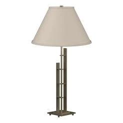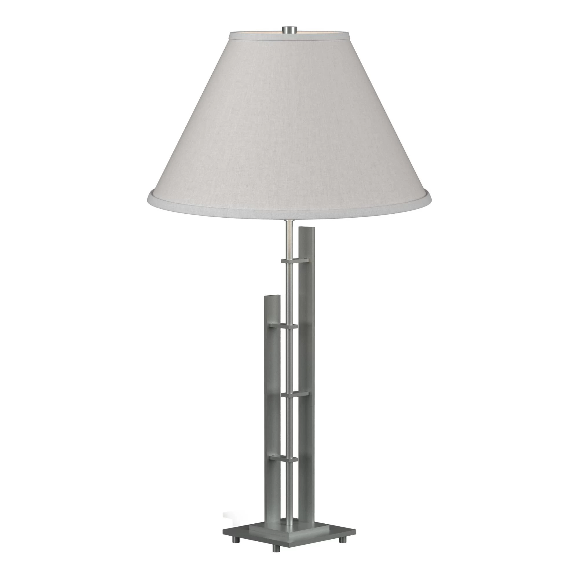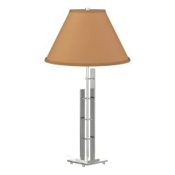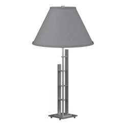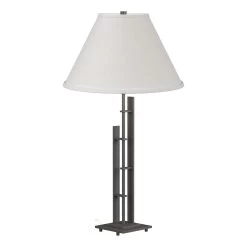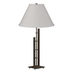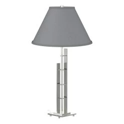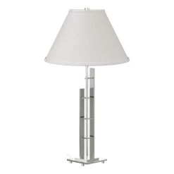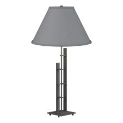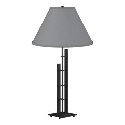 Strong, clean lines of hand-worked steel form the basis for our Metra Table Lamp. The clean, no-nonsense design fits well with most spaces. Crafted by artisans here in Vermont, each piece is unique. All Hubbardton Forge products are hand-crafted to last one at a time in Vermont and backed by a Lifetime Limited Warranty.