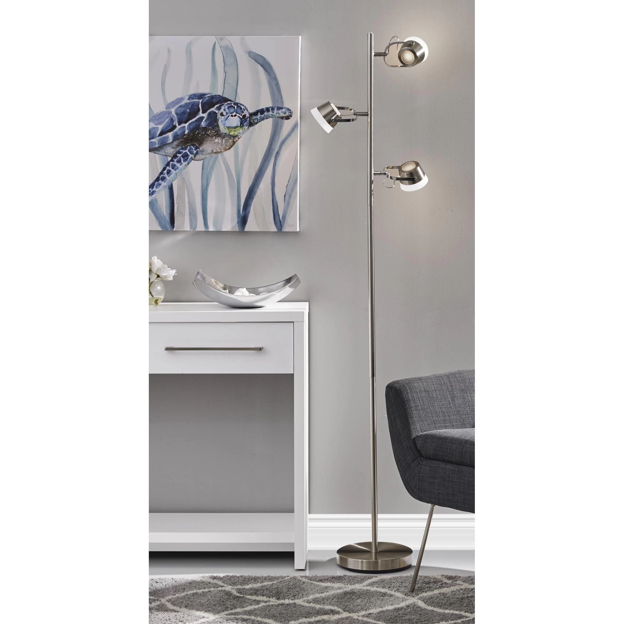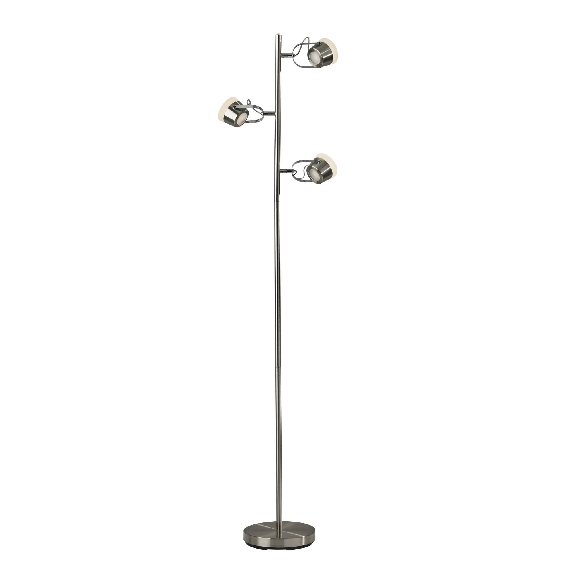 A sleek, modern design, the Nitro LED Tree Lamp uses high end materials to create a functional lamp that elevates the look of any space. Three adjustable shades are made of frosted acrylic and held in place by chrome brackets which provide a nice contrast to the brushed steel finish. Adjust the light to suit your situation using the touch switch located discreetly on top of the pole.