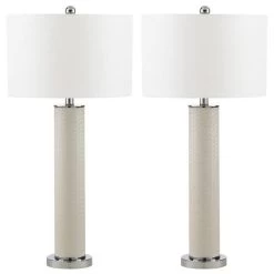 A classic piece that illuminates the head curators office in a major contemporary art museum inspired this modern table lamp. Its graceful curves, luxurious geometric pattern and polished details were designed for the expert eye. Set of 2 Lamps.