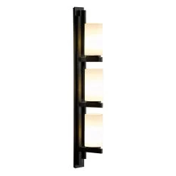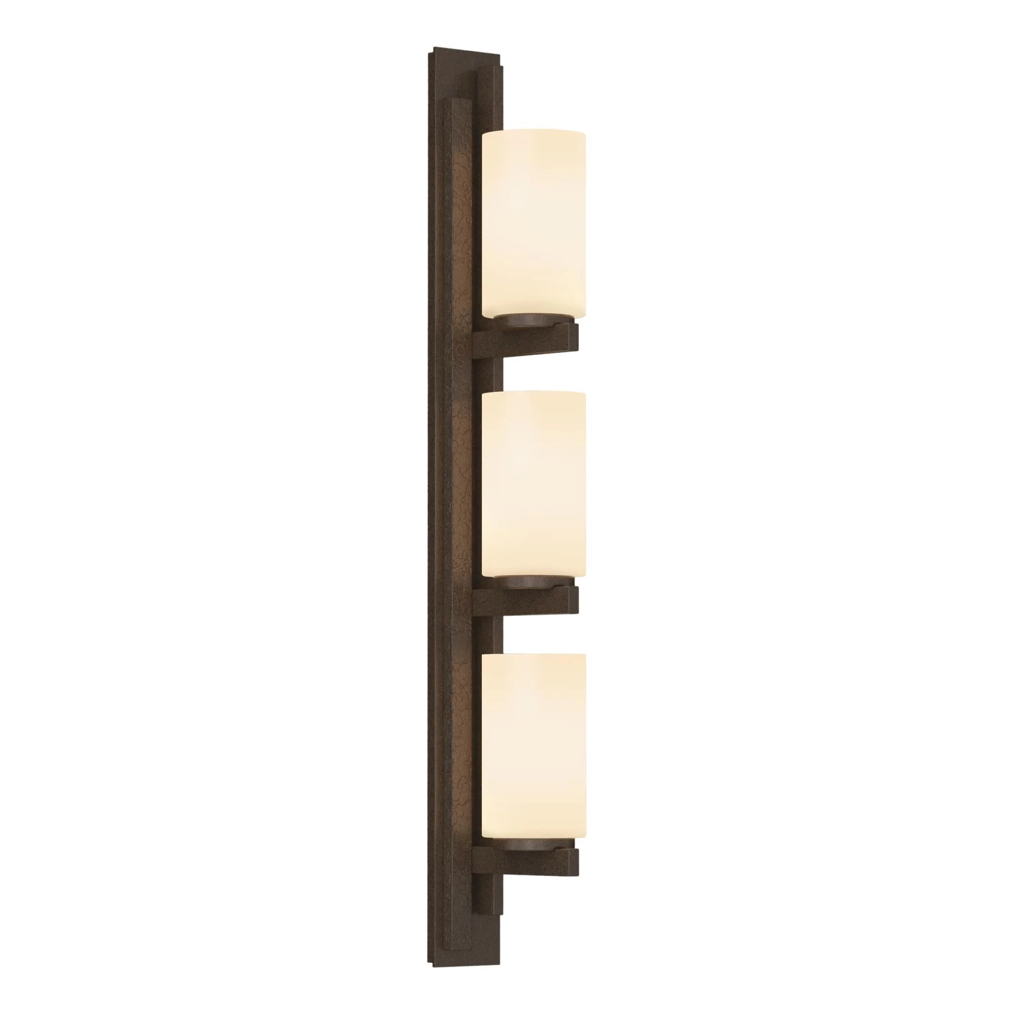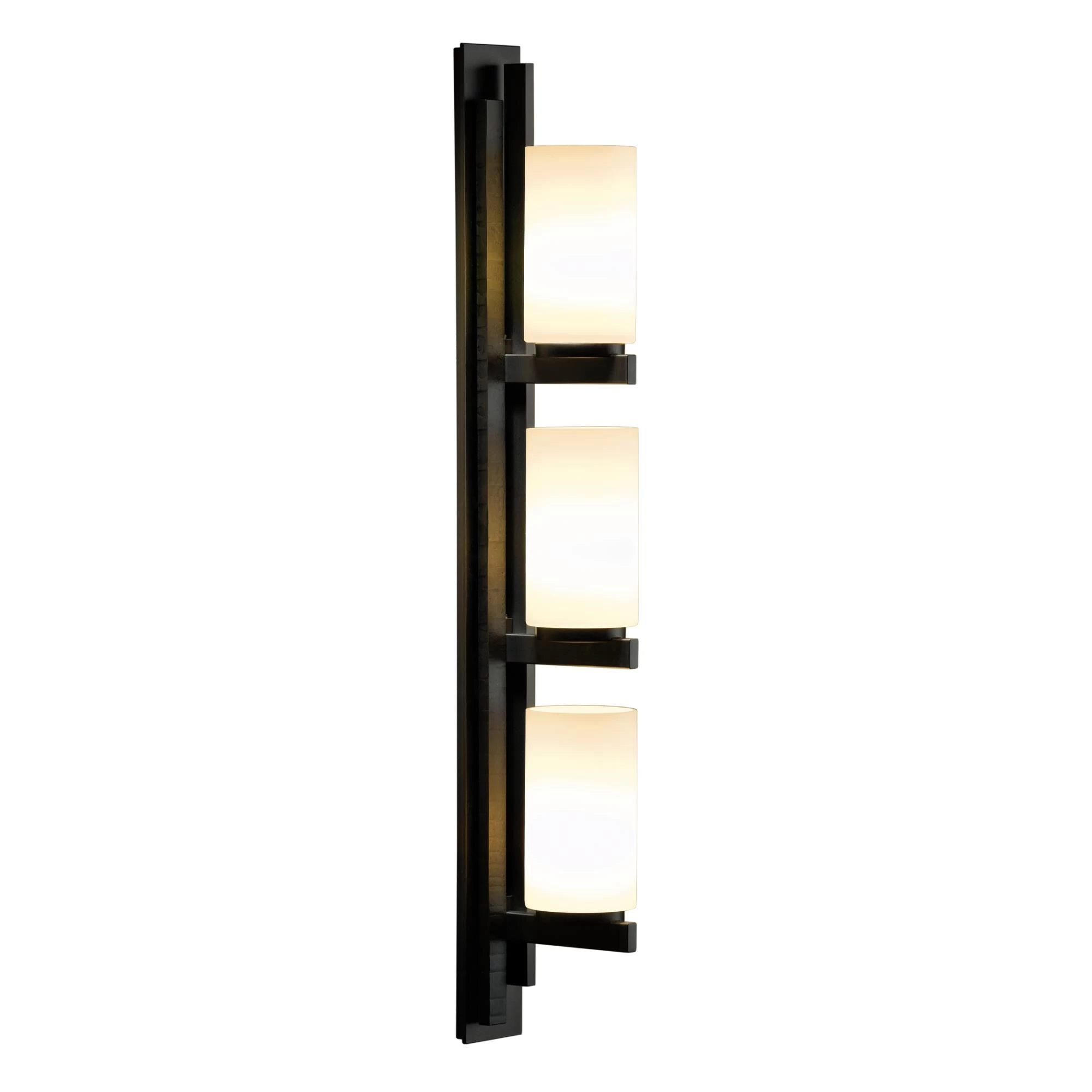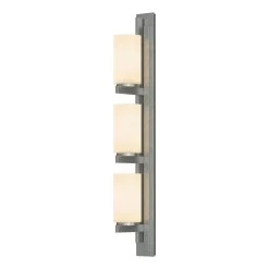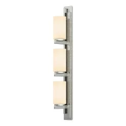 Stacked three tiers high, the glass cylinder lamps perch on forged steel jutting out from the steel base plate. The plate displays a hand-hammered steel bar that adds visual flare and texture to the composition. Handcrafted here in Vermont. All Hubbardton Forge products are hand-crafted to last one at a time in Vermont and backed by a Lifetime Limited Warranty.