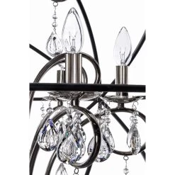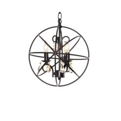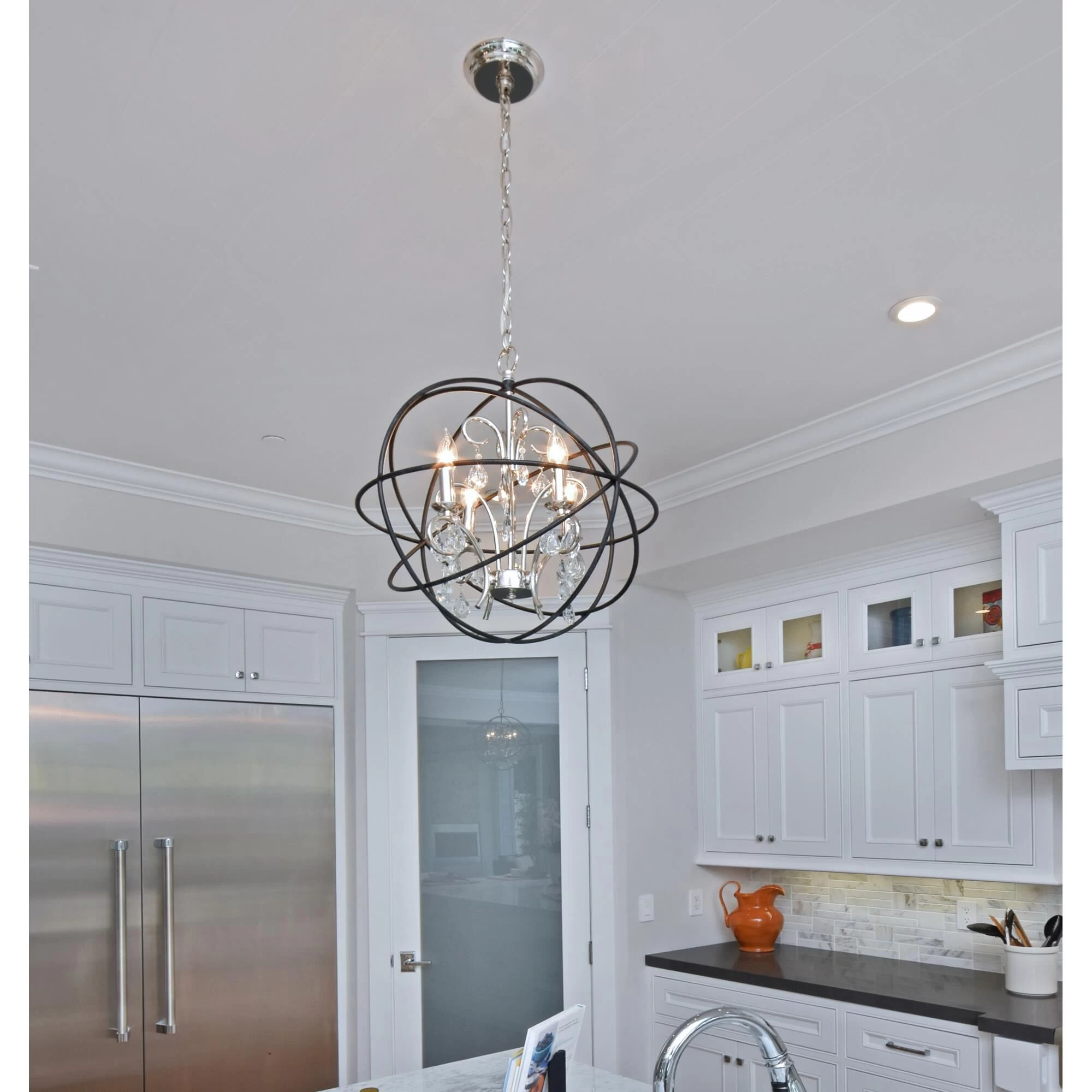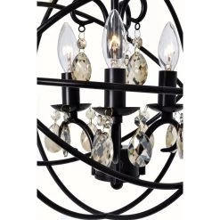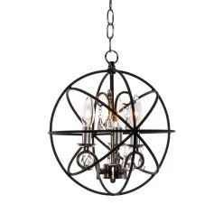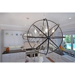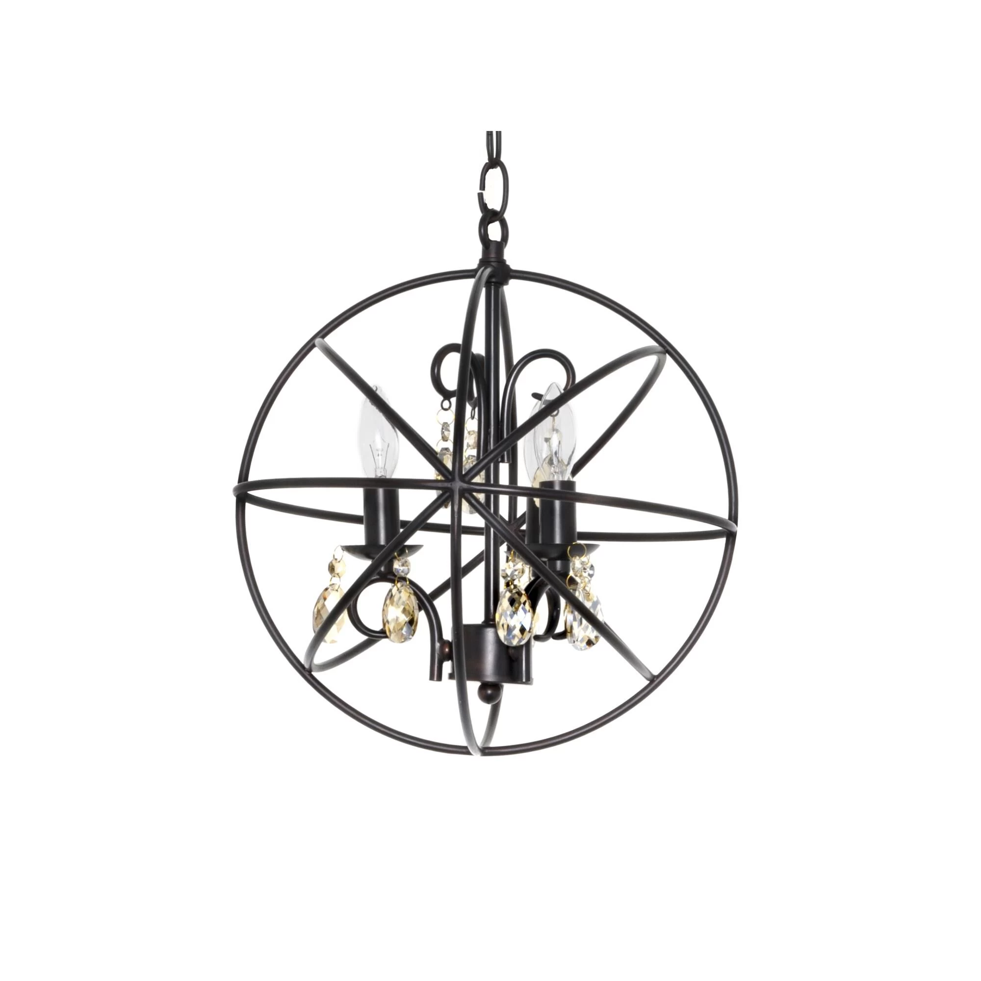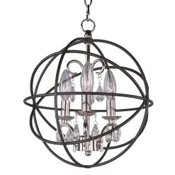A spherical frame of metal surround a simple line chandelier draped in crystal for a transitional style that fits any interior design. Orbit is available in 2 sizes and 2 finishes, Oil Rubbed Bronze with Cognac crystal and a combo finish of Anthracite and Polished Nickel with Clear crystal.