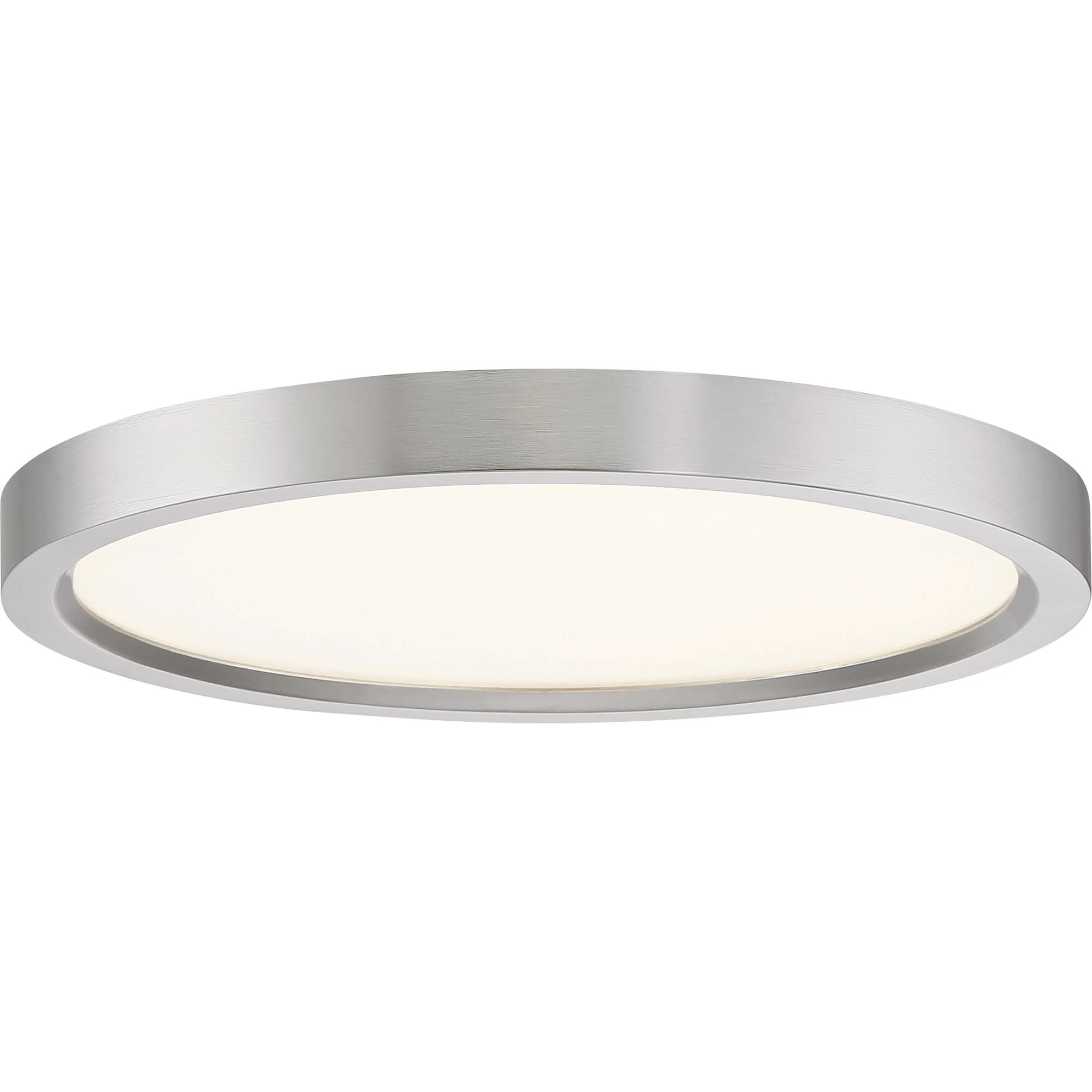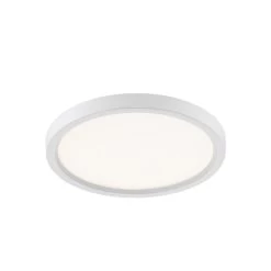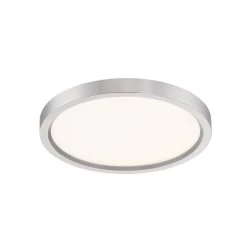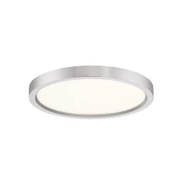 Available in three finishes and three sizes, the Outskirts flush mount is suited for a variety of room applications. In your choice of brushed nickel, white or oil-rubbed bronze, it is featured in sizes of 7.5, 11 or 15. The white acrylic shade is illuminated with integrated LED technology and the thick canopy adds depth to the simple structure.