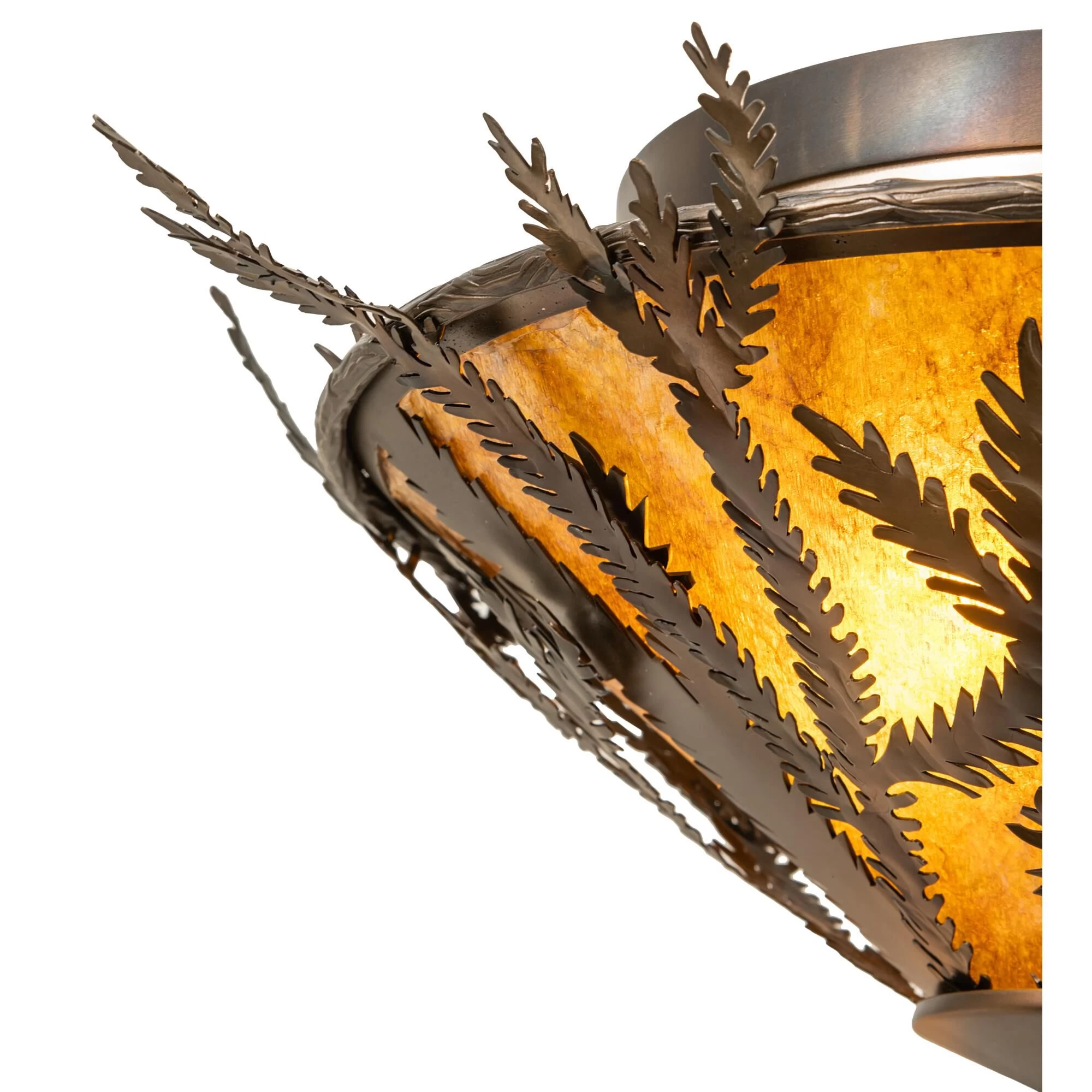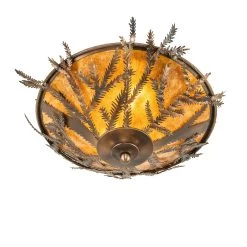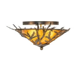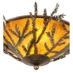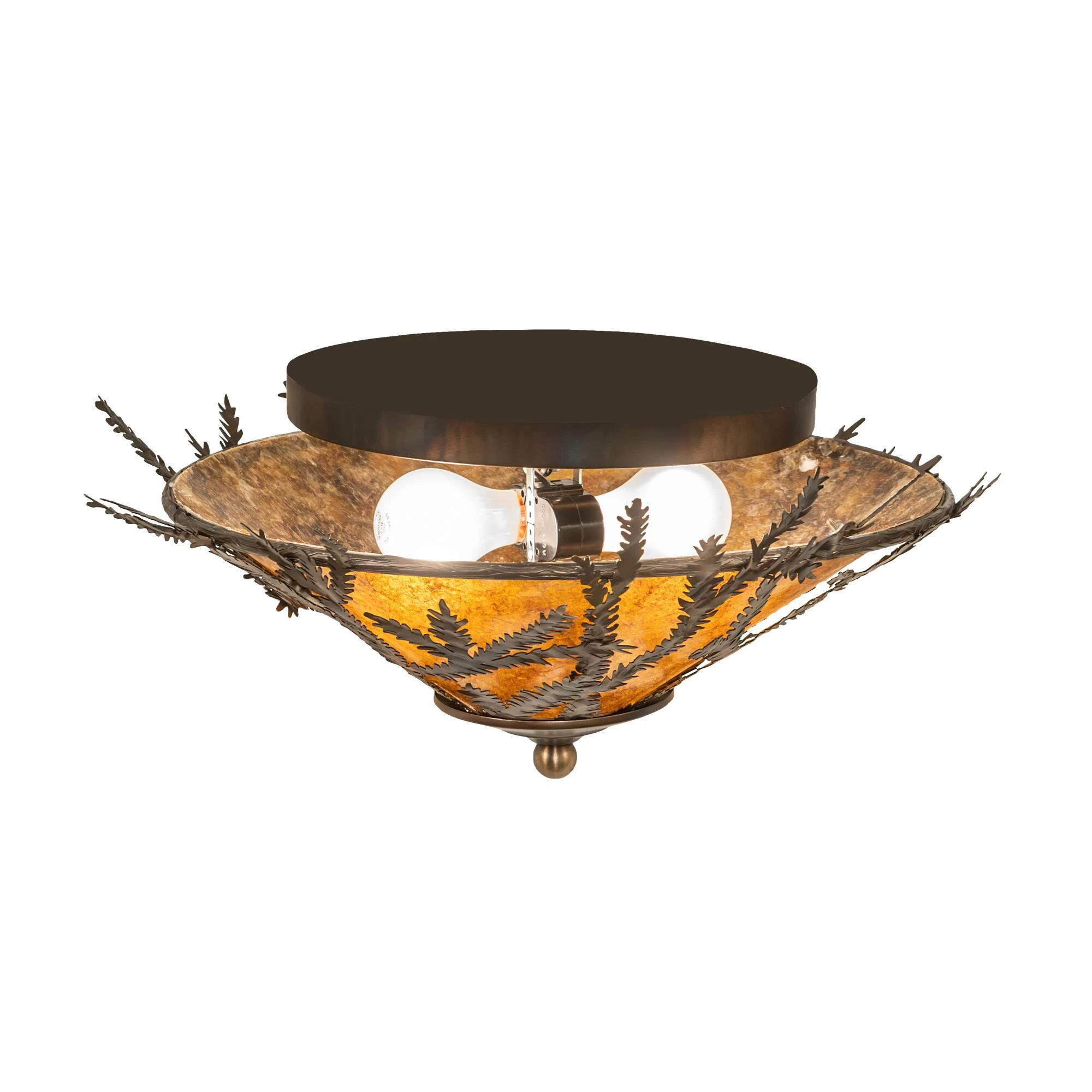 Bring Rustic Charm Into Your Home With This Stunning Ceiling Fixture Adorned With Pine Branch And Pine Needle Metal Accents Featured In Antique Copper. The Exquisite Inverted Shade Is Handcrafted Of Beautiful Amber Mica. The Pine Branch Flushmount Is Featured In Our American-Made; American-Designed; Handmade Nature Inspired Lighting Collection And Manufactured In Yorkville; New York. Ul And Cul Listed For Dry And Damp Locations.