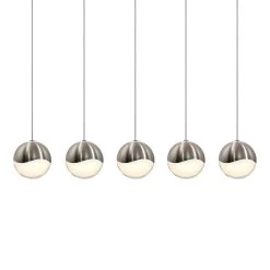 A precisely crafted metal hemisphere with an infinity wave captures a crystal semisphere through which LED illumination is projected. Grown in three sizes and two finishes, Grapes offers broad variety and infinite possibilities to provide spectacular illumination to spaces from the most intimate to the most vast. The polished chrome variety of Grapes features a faceted interior on its solid clear crystal, providing sparkling illumination that changes with the point of view. Seen from the middle or above, the crystal appears clear with a subtle luminance. Moving below, the crystal facets become increasingly apparent, refracting the light into a dazzling radiance. The satin nickel variety of Grapes features a crystal hemisphere with a white interior, radiating diffused, omnidirectional illumination, with a halo of clear crystal along its perimeter.