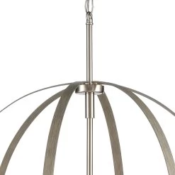 The Rotunde collection features a globe design with a flat iron frame and parallel arms that conform to the shape. The two-tone finish highlights the details of the metalwork.