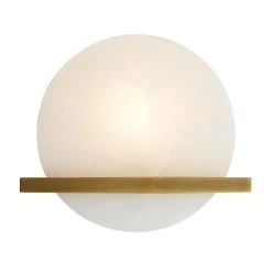 Gorgeous polished white onyx creates a warm filtered light and adds natural sophistication to any space. Two small bulbs beneath accentuate the stones organic veins and features brilliantly as it rests perfectly in the frame. The fixture mounts directly from a steel frame finished in antique brass. Approved for use in covered outdoor areas. Onyx will vary naturally in tone and texture.