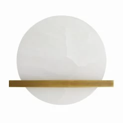 Gorgeous polished white onyx creates a warm filtered light and adds natural sophistication to any space. Two small bulbs beneath accentuate the stones organic veins and features brilliantly as it rests perfectly in the frame. The fixture mounts directly from a steel frame finished in antique brass. Approved for use in covered outdoor areas. Onyx will vary naturally in tone and texture.