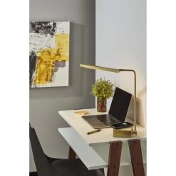 The Sawyer LED AdessoCharge Wireless Charging Desk Lamp is a modern desk lamp that includes a wireless charging pad with Qi inductive charging technology. Many smartphones have Qi technology built in, so just place your phone on the pad and it will charge right up. No cords, no mess. Its that easy! All AdessoCharge product is Qi certified by the Wireless Power Consortium. Our product has been tested and verified to be safe and in compliance with the Qi standard. The AdessoCharge pad supports 5W charging on contact with the charging pad, which gets your phone from 0% to 100% in just 3-4 hours, depending on your phone model. A USB is located on the base and can charge up a second device simultaneously. AdessoCharge is unique in that you can use the AdessoCharge pad, the USB and the light all at the same time with maximum efficiency of all three. A simple rocker switch on the base turns the lamp on and off.Black metal is paired with camel brown leather fabric that covers the base creating a secure, non-slip surface for your phone to charge while also adding a pop of urban modern style. The shade adjusts forward, up and down to allow light to be directed exactly where it is needed. If your smartphone doesnt support Qi wireless charging, you will need to purchase a Qi compatible case, which is sold through a variety of retail channels. Or you can also charge your smartphone with the USB port that is also included in the lamp base.Compatible with Apple iPhone 8 / 8 plus / X / Galaxy Note 8 / S8 / S8 plus / S7 / S7 edge / S6 / S6 edge / S6 edge+ / Nexus 4 / 5 / 6 / 7 / LG G3/ Microsoft Lumia 1520, 1020, 930, 929, 928, 920