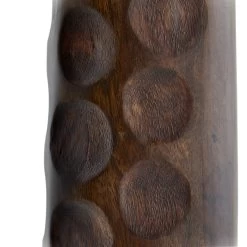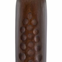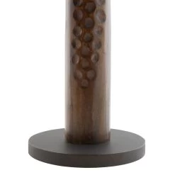 Recalling Aboriginal carved-wood rain sticks, the Serrano lamp bestows a found-object sensibility to a room. The artisan accent piece, in umber wood, rests on a matching wood base and is finished with an off-white linen drum shade lined in off-white cotton. Finish will vary.