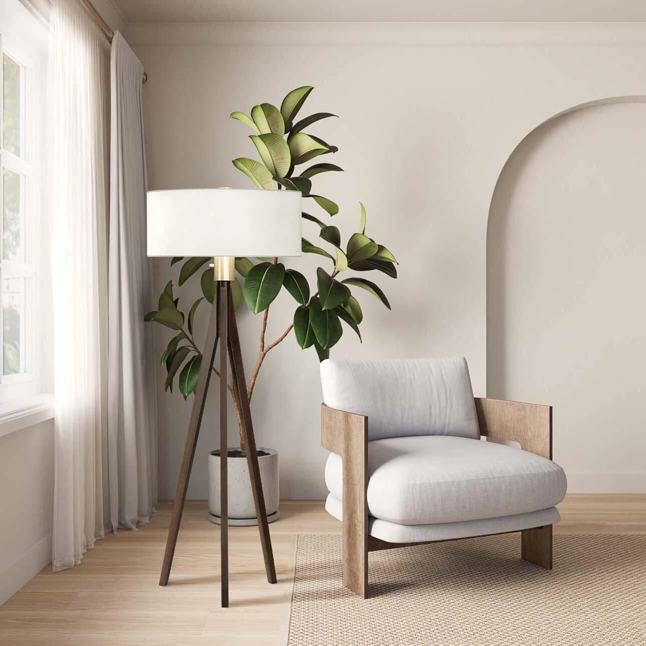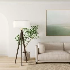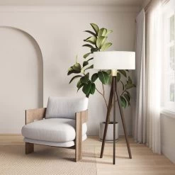 Originally designed by Mervyn Weitz in 1998, the Tripod Floor lamp was Inspired by yurts found in a Laurel Canyon retreat center. Back by popular demand, this classic floor lamp works elegantly in living rooms to add soft, warm light. The base is crafted from pecan-finished wood and the three stable legs support the brushed nickel socket and linen shade. NOVA of California was Founded in 1923 Upon an Unwavering Commitment to the Crafting and Designing of Unfathomably Distinctive Home Dcor, Lighting, and Mirrors. A Dedication to Environmental Protection and a Satisfied Customer Base Has Allowed NOVA to Thrive and Flourish for Nearly a Century.
